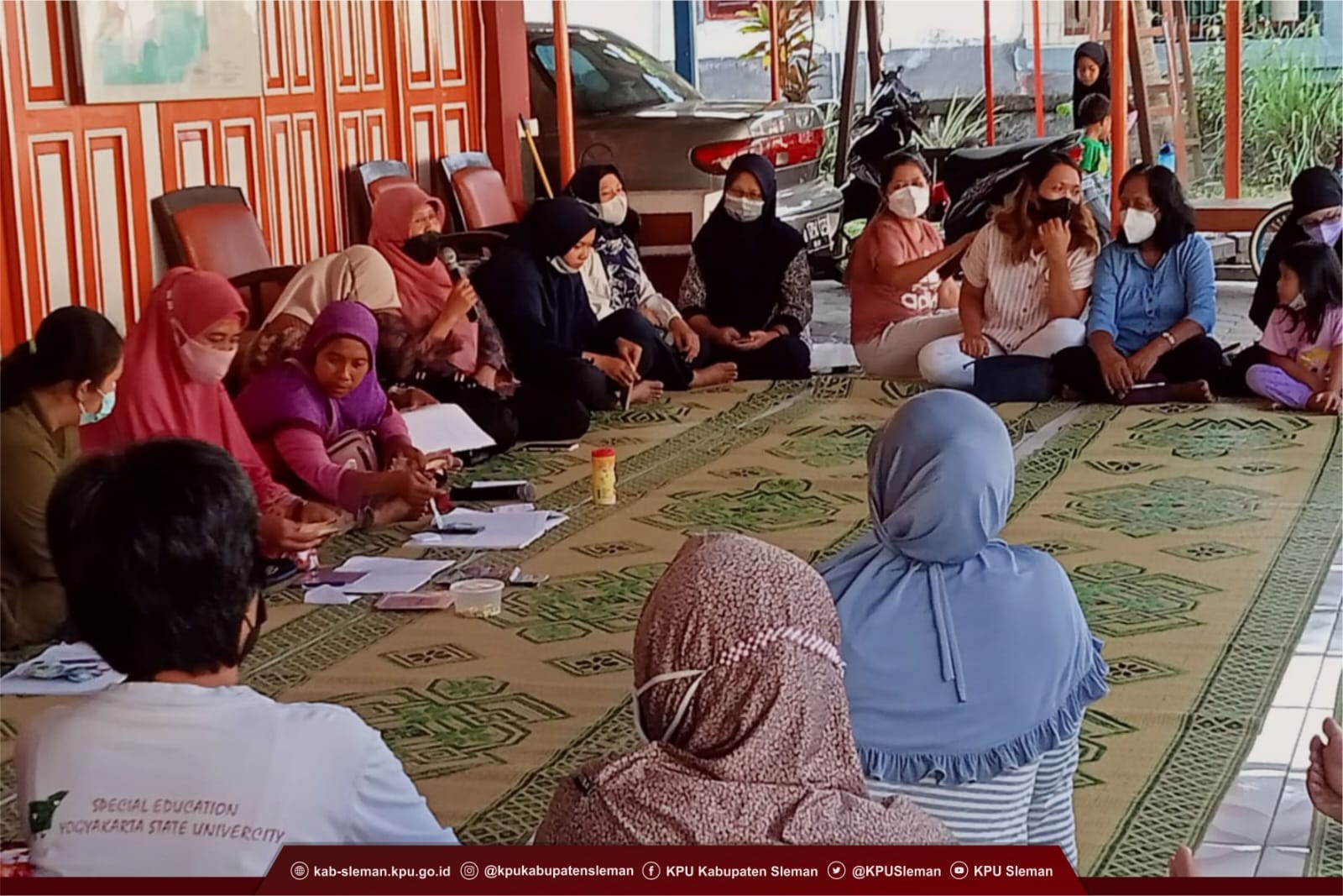 Dalam upaya memberikan sosialisasi kepada pemilih perempuan, maka KPU Kabupaten Sleman pada hari Minggu, 7 Agustus 2022, pukul 14.00 – 16.15 WIB, menghadiri acara rapat rutin PKK RT 06 RW 02 Dusun Bening Sendangadi Mlati Sleman. Dalam kesempatan rapat rutin tersebut, Indah Sri Wulandari selaku Ketua Divisi Perencanaan, Data, dan Informasi KPU Kabupaten Sleman menyampaikan sosialisasi tentang pemilu dan pemilihan serentak tahun 2024 serta aplikasi mobile lindungihakmu.