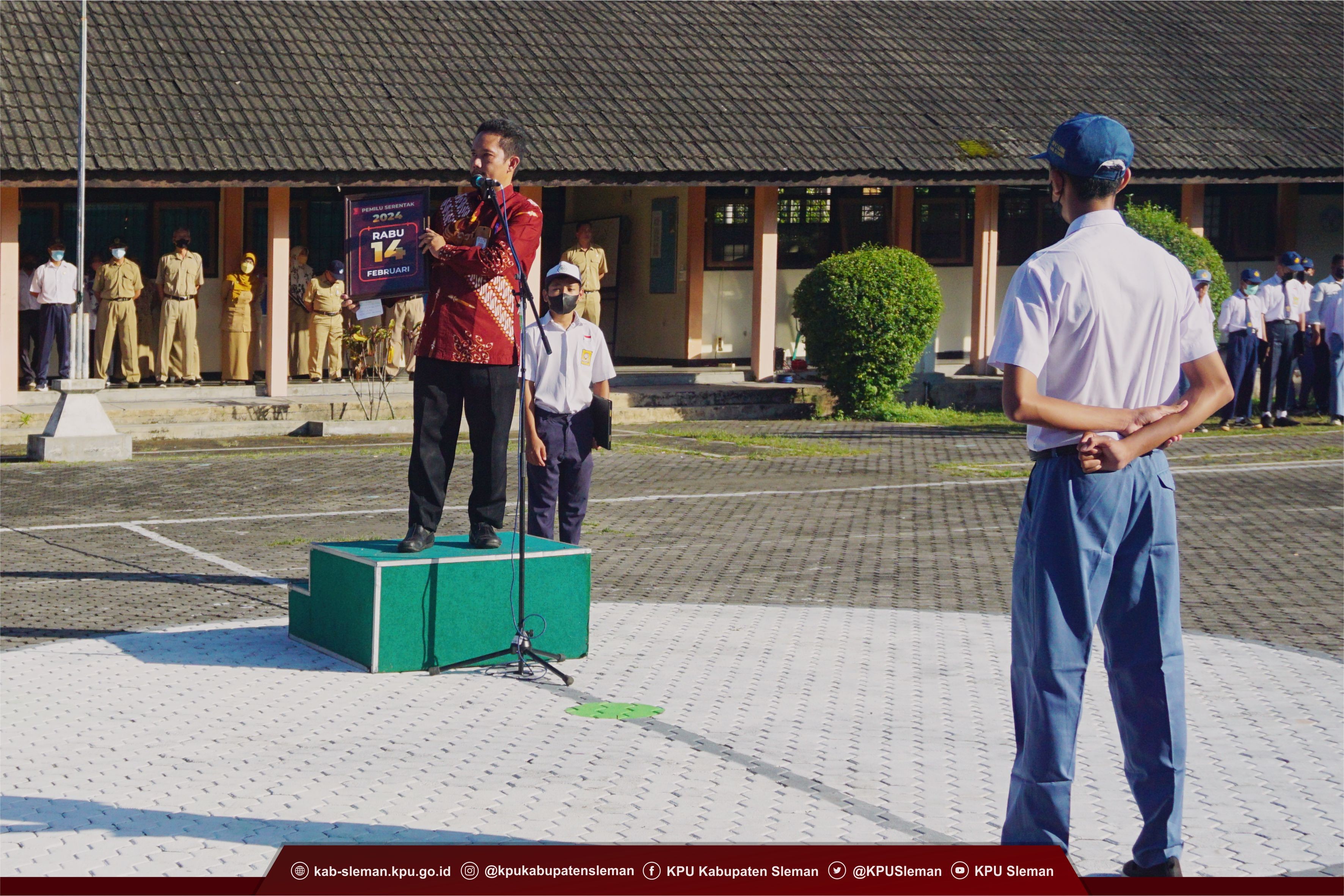 Sosialisasi Pemilu Serentak 2024 dalam Upacara Rutin SMK Negeri 1 Seyegan