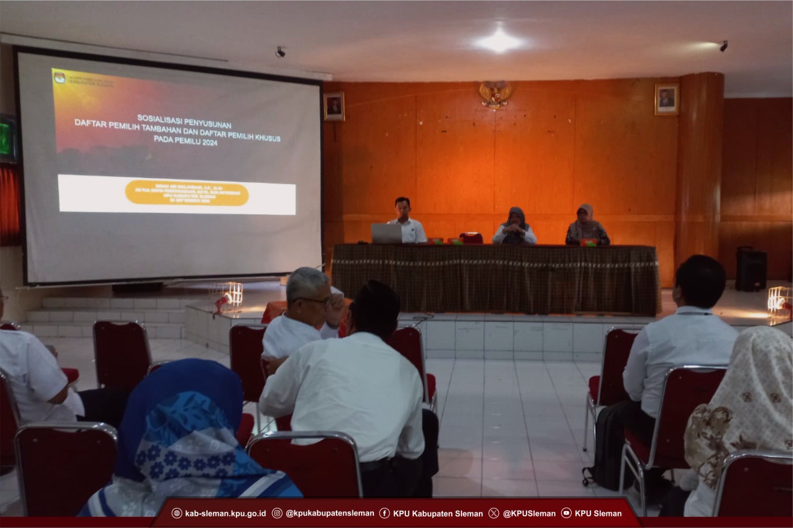 Indah Sri Wulandari selaku Ketua Divisi Perencanaan, Data, dan Informasi KPU Kabupaten Sleman didapuk menjadi narasumber dalam kegiatan sosialisasi tersebut. Dalam materinya Indah menyampaikan tentang tahapan penyusunan DPTb, persyaratan pindah memilih, pelayanan pindah memilih, dokumen alat bukti pendukung alasan pindah memilih, daerah pemilihan di Kabupaten Sleman, dan DPK.