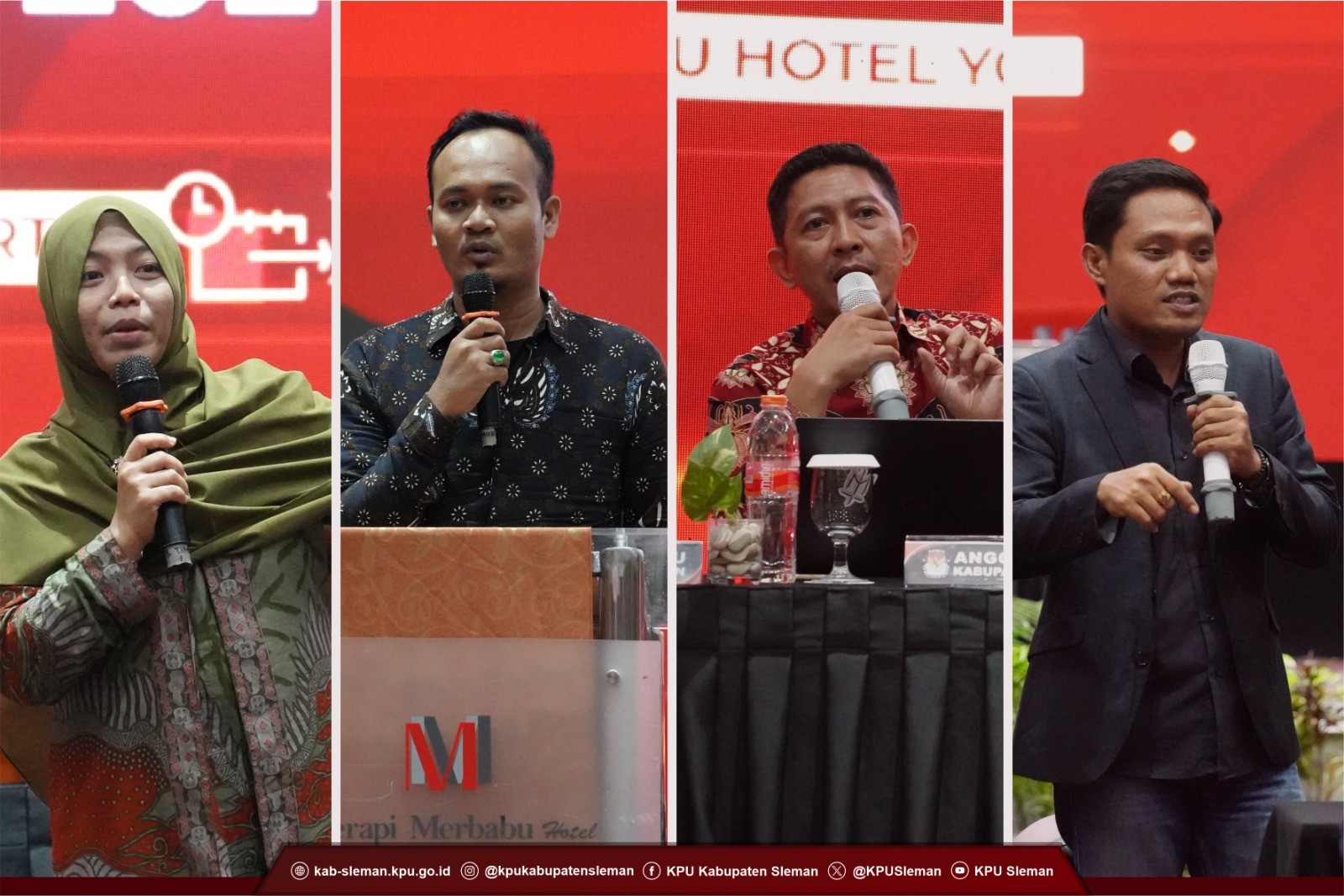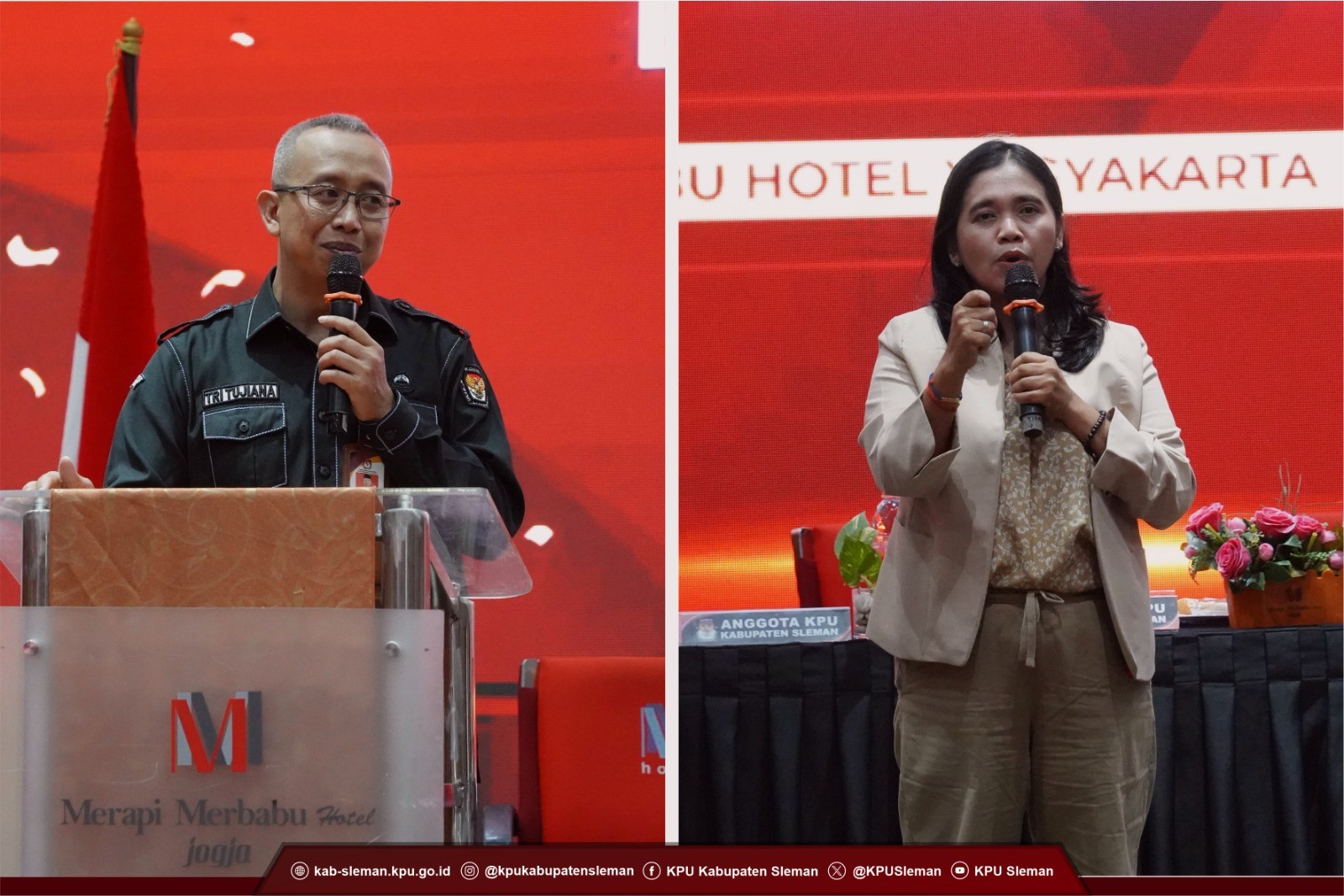 Selanjutnya materi disampaikan oleh anggota KPU Kabupaten Sleman sebagai arahan internal kepada peserta kegiatan. Noor Aan Muhlishoh selaku Ketua Divisi Teknis Penyelenggaraan mengemukakan perihal ‘Bagaimana Menjaga Profesionalitas Penyelenggara Pemilu’, menegaskan untuk merekatkan intensitas pertemuan dan lebih memahami teknis dalam penyelenggaraan pemilihan untuk menyukseskan Pemilihan Bupati dan Wakil Bupati Sleman Tahun 2024.
