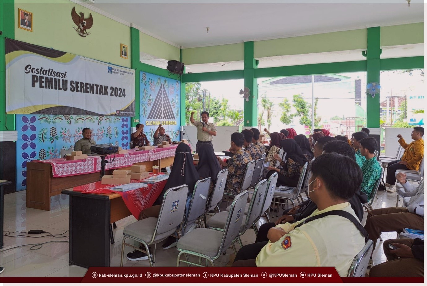 Sleman (15/02) – Ketua Divisi Sosialisasi, Pendidikan Pemilih, Partisipasi Masyarakat dan SDM KPU Kabupaten Sleman Aswino Wardhana menjadi narasumber kegiatan Sosialisasi Pemilu Serentak 2024. Kegiatan ini diselenggarakan oleh Badan Kesatuan Bangsa dan Politik Kabupaten Sleman pada Kamis (16/02).