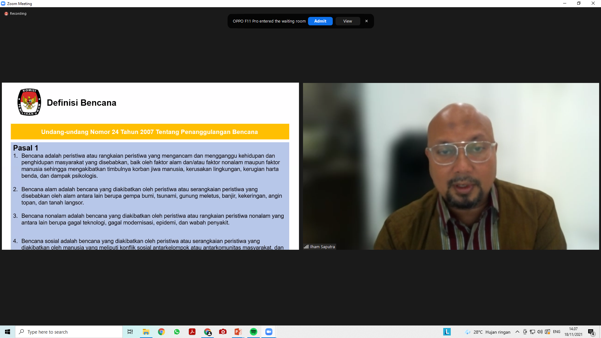 Webinar Dinamika Demokrasi di Daerah Bencana : Ikhtiar Penyelenggara Pemilu Persiapkan Pemilu 2024 yang Tanggap Bencana