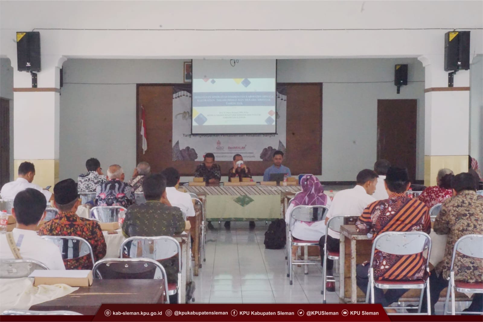 KPU Kabupaten Sleman diundang untuk menyampaikan materi mengenai “Tahapan Pembentukan dan Peran Badan Ad Hoc pada Pemilu 2024”. Selain mengundang KPU Kabupaten Sleman, kegiatan ini juga mengundang narasumber dari Kesbangpol DIY dan Akademisi Fisipol UGM dan dihadiri oleh perangkat Kapanewon Godean dan perangkat Kalurahan Sidoagung.