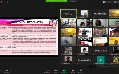 Sleman (27/06) – Sekolah Pemilu dan Demokrasi (SPD) Sesi I KPU Kabupaten Sleman digelar pada Sabtu 27 Juni 2020 secara daring melalui aplikasi zoom cloud meeting. SPD digelar sebagai upaya KPU Kabupaten Sleman untuk melakukan pendidikan pemilih bagi masyarakat. Tujuan utamanya adalah terbentuknya generasi muda yang berkomitmen untuk turut mengawal demokratisasi melalui penyelenggaraan pemilu yang bermartabat. Sebanyak 65 peserta Webinar Sekolah Pemilu dan Demokrasi sesi I yang telah mendaftar secara online ke KPU Kabupaten Sleman.
