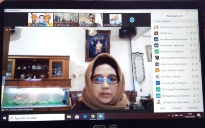 Sleman (05/06) – Melalui media virtual meeting KPU Kabupaten Sleman menyelenggarakan kegiatan Halal Bihalal dengan penyelenggara pemilihan ditingkat kecamatan yakni Panitia Pemilihan Kecamatan (PPK) se-Kabupaten Sleman. Kegiatan yang berlangsung Jumat pagi ini juga menjadi salah satu cara warming up penyelenggara Pemilihan Bupati dan Wakil Bupati Sleman Tahun 2020. Seperti diketahui, saat ini telah ada keputusan baru terkait dengan lanjutan pelaksanaan tahapan Pemilihan Serentak Tahun 2020 yang sesuai keputusan akan diselenggarakan pada akhir tahun 2020 tepatnya 9 Desember 2020. Pada awal sambutan dari pihak KPU Kabupaten Sleman yang diwakili oleh Ketua Divisi Sosialisasi, Pendidikan Pemilih, Partisipasi Masyarkat dan SDM Aswino Wardhana, S.Ip menyampaikan ucapan selamat hari raya Idul Fitri 1441 H dari seluruh jajaran KPU Kabupaten Sleman. Kedua, pertemuan melalui media virtual ini merupakan media sharing informasi terkait penyelenggaraan pemilihan lanjutan pemilihan bupati dan wakil bupati Sleman tahun 2020. Dok. Foto Sambutan Komisioner KPU Kabupaten Sleman Hadir pula dalam acara ini Ketua KPU D.I. Yogyakarta bapak Hamdan Kurniawan, S.Ip., M.A., dalam kesempatan bertemu dengan seluruh PPK Se-Kabupaten Sleman beliau berkesempatan menyampaikan arahan dan pesan terkait pelaksanaan pemilihan serentak tahun 2020. Pelaksanaan pemilihan serentak sesuai keputusan akan dilaksanakan 9 Desember 2020, dalam arahannya kepada seluruh penyelenggara pemilihan agar tetap menjunjung tinggi integritas, sikap jujur dan benar selama melaksanakan tahapan. Kedua, terkait pelaksanaan lanjutan tahapan dimasa pandemi COVID-19 tentunya akan ada penyesuaian penyesuaian secara teknis terkait pelaksanannya. Selain itu kemampuan secara kelembagaan dan juga kemampuan personal menjadi titik tekan Ketua KPU D.I. Yogyakarta untuk selalu ditingkatkan. Kemampuan secara kelembagaan seperti jenjang koordinasi yang harus dihormati serta bagaimana menjaga soliditas diantara anggota PPK. Sementara kemampuan personal yang penting adalah kemampuan membaca dan memahami aturan serta kebiasaan mencatat secara detil peristiwa yang ada ditiap-tiap tahapan. Dok. Foto Arahan Ketua KPU D.I. Yogykarta bapak Hamdan Kurniawan, S.ip., M.A. Sementara Sekretaris KPU Kabupaten Sleman bapak Muhammad Hasyim, S.E., M.M dalam kesempatan ini juga berkenan menyampaikan arahan, pokok arahan beliau menitiktekankan pada pengaktifan kembali SK baik PPK maupun PPS guna melaksanakan lanjutan tahapan pemilihan Bupati dan Wakil Bupati Sleman tahun 2020. Selain itu perlunya menjalin kerja sama yang baik. Terakhir beliau menekankan perlunya menambah wawasan terutama terkait aturan, hal ini penting dikarenakan semua pelaksanaan tahapan selalu berdasarkan aturan. Mengakhiri kegiatan Halal Bihalal, disampaikan ikrar syawalan sekaligus doa penutup. (Nars)