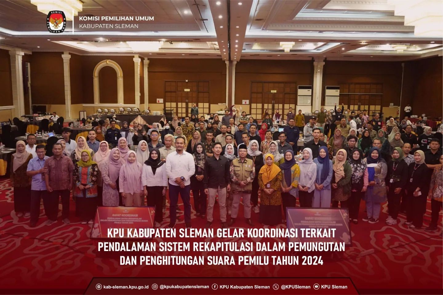Sleman (31/01) - Mendekati Pemilu tahun 2024, KPU Kabupaten Sleman gelar pendalaman Sistem Rekapitulasi bersama stakeholder, PPK Divisi Teknis Penyelenggaraan dan Data Informasi se-Kabupaten Sleman, serta PPS Divisi Data Informasi dan Teknis Penyelenggaraan se-Kabupaten Sleman untuk pemungutan dan penghitungan suara dalam Pemilu tahun 2024. Kegiatan tersebut dilaksanakan pada Senin (29/01) berlokasi di The Rich Jogja Hotel pukul 09.00 WIB.