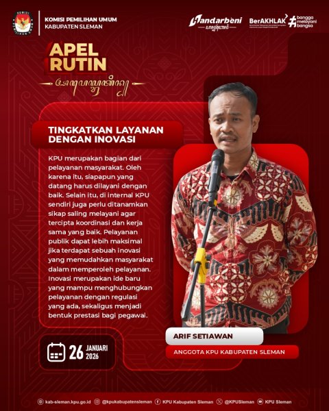 Sleman – JDIH (Jaringan Dokumentasi dan Informasi Hukum) merupakan sistem pendayagunaan bersama peraturan perundang-undangan dan bahan dokumentasi hukum lainnya yang berfungsi memberikan pelayanan informasi hukum yang mudah, cepat, dan akurat. Untuk mewujudkan hal tersebut KPU Kabupaten Sleman Gelar Rapat Evaluasi Pengelolaan Laman Resmi Dan Media Sosial JDIH Tahun 2025 pada Selasa (27/01). Rapat yang dihadiri oleh seluruh Komisioner, Sekretaris, Pejabat Struktural, dan Staf Pelaksana KPU Kabupaten Sleman sebagai upaya dalam melakukan evaluasi pada kualitas, serta optimalisasi penyebaran informasi hukum KPU Kabupaten Sleman melalui laman resmi dan media sosial. Sura’ie selaku Ketua Divisi Hukum dan Pengawasan dalam pembukaannya menyampaikan bahwa untuk menjangkau masyarakat lebih banyak pada era digitalisasi ini, JDIH KPU Kabupaten Sleman hadir pada laman resmi dan media sosial. Dengan adanya penambahan akun media sosial tiktok JDIH, KPU Kabupaten Sleman memiliki tujuan untuk lebih mempopulerkan produk hukum atau produk kebijakan yang ada. Selanjutnya, Kurnia Pramuditya selaku Kasubbag Teknis Penyelenggaraan, Pendidikan Pemilih, dan Hubmas KPU Kabupaten Sleman memaparkan pengelolaan laman resmi dan media sosial JDIH yang sudah dilaksanakan di Tahun 2025. Dimulai dari tampilan, unggahan konten, serta tata urutan dari konten yang terposting di laman resmi dan media sosial JDIH KPU Kabupaten Sleman. Kemudian, rapat dilanjutkan dengan penyampaian hasil evaluasi oleh peserta rapat yang berfokus pada strategi yang dilakukan agar setiap konten atau produk yang diunggah dapat terbaca oleh logaritma, sehingga mampu menjangkau masyarakat lebih luas dalam mendapatkan informasi. Selain itu, perluu terus dilakukan penyempurnaan pada media sosial JDIH KPU Kabupaten Sleman, terutama tiktok. (agl)