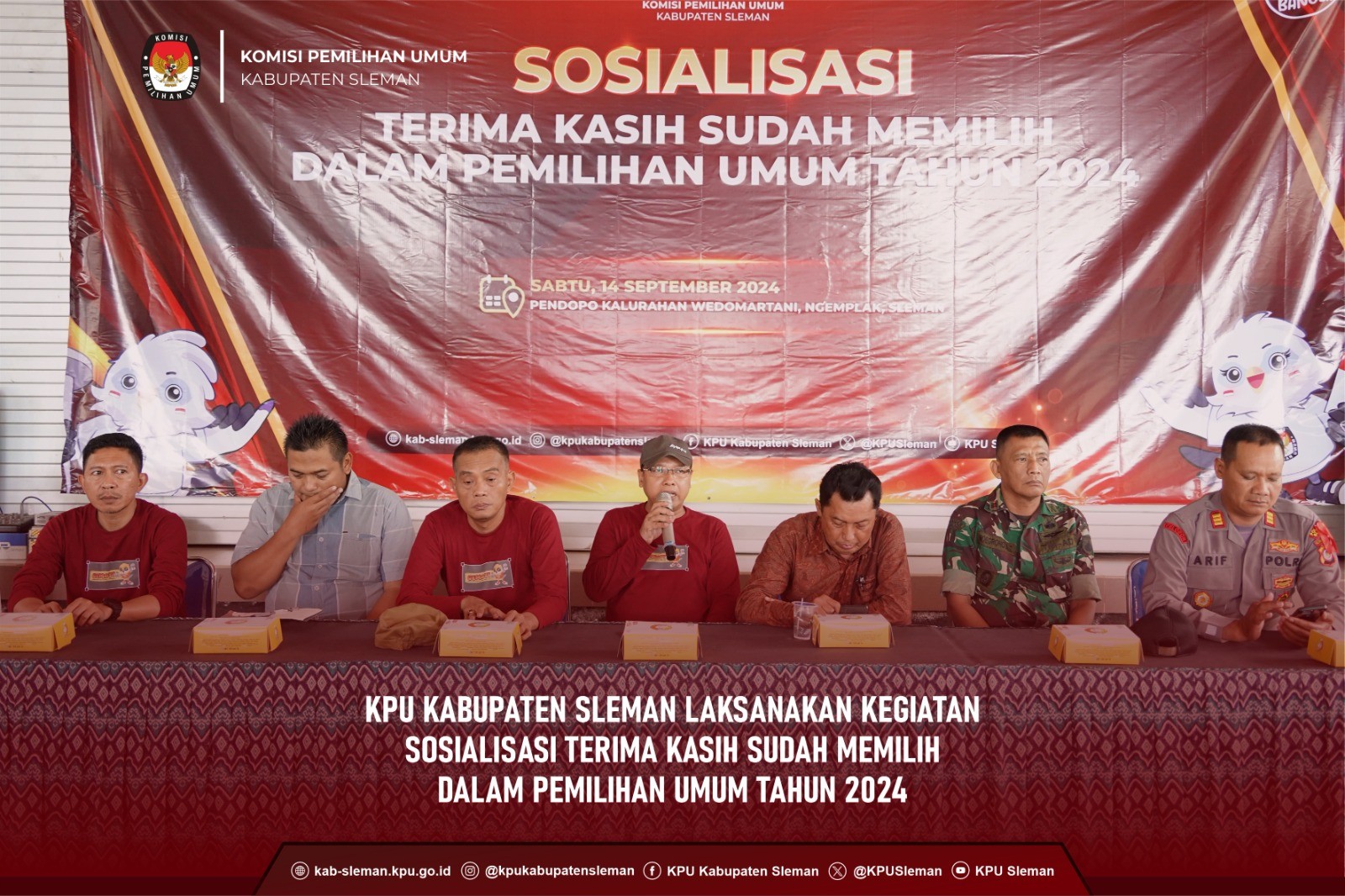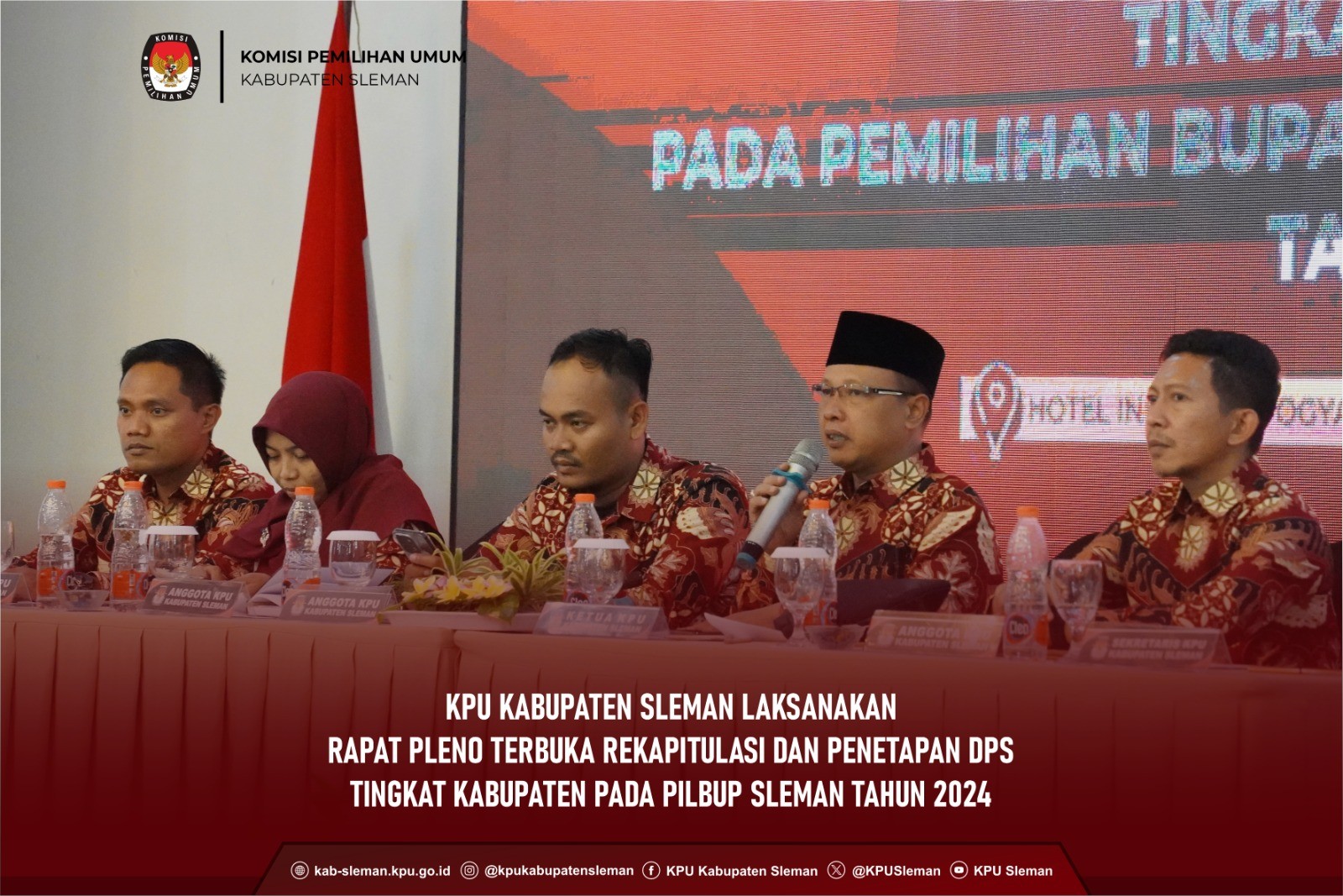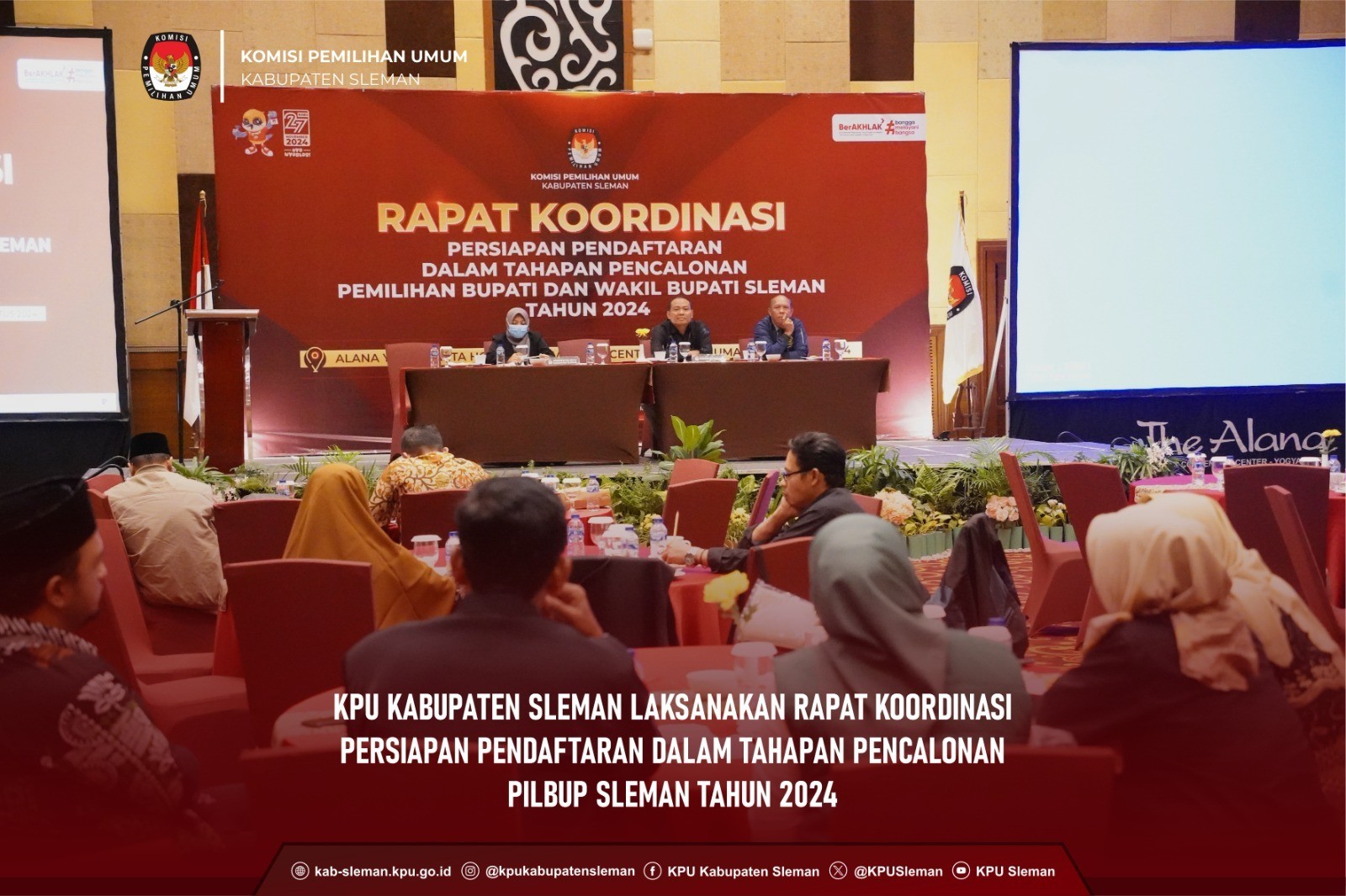 Sleman (16/08) - KPU Kabupaten Sleman melaksanakan Rapat Koordinasi Persiapan Pendaftaran dalam Tahapan Pencalonan Pemilihan Bupati dan Wakil Bupati Sleman Tahun 2024 pada Jumat (16/08) bertempat di The Alana Yogyakarta Hotel & Convention Center. Kegiatan tersebut mengundang narasumber dari Kepolisian Resor Kota Sleman dan Pengadilan Negeri Sleman dengan peserta kegiatan yakni Partai Politik Peserta Pemilu Tahun 2024 yang memperoleh kursi pada DPRD Kabupaten Sleman, stakeholder terkait, dan media. “Rapat koordinasi ini penting sebagai persiapan untuk pendaftaran pasangan calon yang akan dilaksanakan sebentar lagi, yakni tanggal 27-29 Agustus. Sebagaimana diatur dalam Peraturan KPU Nomor 8 Tahun 2024 bahwa terdapat syarat yang harus dipenuhi oleh pasangan calon sebelum mendaftar sebagai calon bupati dan wakil bupati yang diusung oleh partai politik terpilih pada kursi DPRD Kabupaten Sleman pada Pemilu Tahun 2024,” ujar Ahmad Baehaqi selaku Ketua KPU Kabupaten Sleman dalam sambutannya, sekaligus membuka kegiatan. dok. foto pemateri dalam Rakor Persiapan Pendaftaran dalam tahapan Pencalonan Pilbup 2024 Bertindak sebagai moderator yakni Noor Aan Muhlishoh selaku Ketua Divisi Teknis Penyelenggaraan KPU Kabupaten Sleman. Aan menyampaikan bahwa rapat koordinasi tersebut bertujuan agar partai politik dapat mengetahui dokumen-dokumen yang perlu diserahkan kepada KPU dalam pendaftaran Calon Bupati dan Wakil Bupati Sleman Tahun 2024. Memasuki sesi materi pertama, Ipda Nyoto selaku perwakilan dari Kepolisian Resor Kota Sleman menyampaikan terkait Tata Cara Penerbitan dan Pengurusan SKCK sebagai syarat pencalonan bupati dan wakil bupati. Dilanjutkan dengan materi kedua oleh Agung Nugroho selaku Wakil Ketua Pengadilan Negeri Sleman mengenai Tata Cara Penerbitan dan Pengurusan Surat Keterangan dengan aplikasi Eraterang untuk menerbitkan persyaratan administrasi dalam pendaftaran calon bupati dan wakil bupati. Materi pertama dan kedua diakhiri dengan sesi tanya jawab dari peserta rapat kepada narasumber. dok. foto sesi masukan dan tanggapn dari peserta Materi ketiga disampaikan oleh Noor Aan Muhlishoh mengenai Dokumen Persyaratan Pencalonan yang harus dipenuhi secara lengkap dan benar/sah. Aan menampilkan contoh dokumen-dokumen tersebut dan menjelaskan kepada peserta partai politik mengenai hal-hal yang perlu diperhatikan dalam pengisian dokumen. Rapat Koordinasi Persiapan Pendaftaran dalam Tahapan Pencalonan Pemilihan Bupati dan Wakil Bupati Sleman Tahun 2024 diakhiri dengan sesi diskusi antara peserta dengan narasumber terkait materi-materi yang telah disampaikan sebelumnya. (Af/Vdf)
