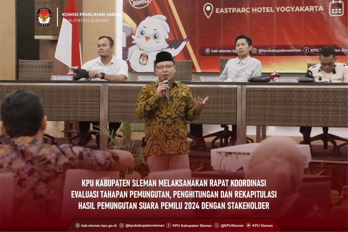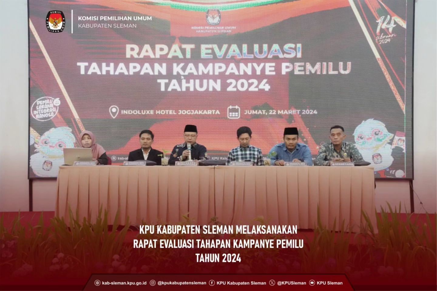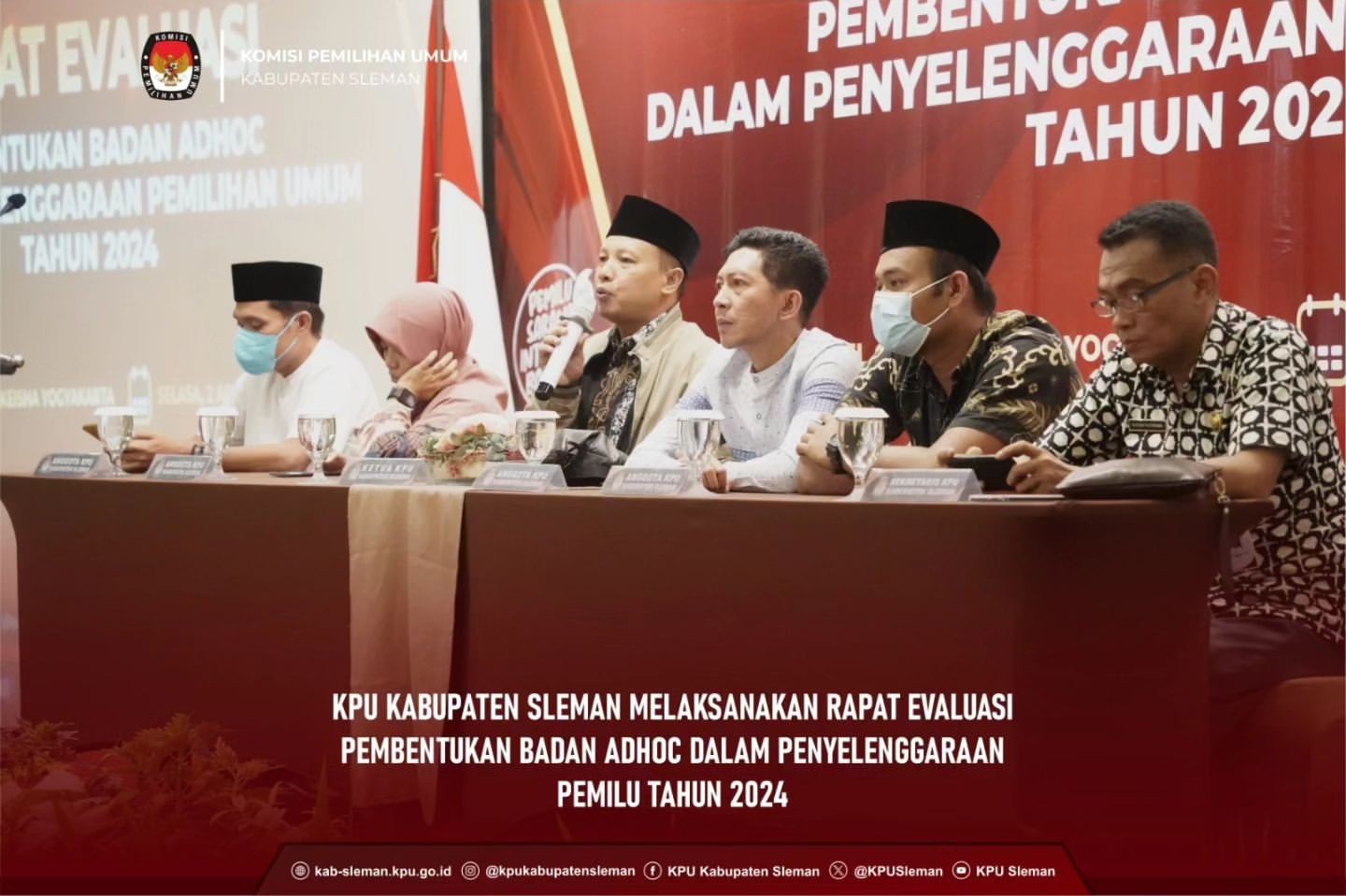 KPU Kabupaten Sleman melaksanakan Rapat Evaluasi Pembentukan Badan Adhoc Pemilu Tahun 2024 dengan Stakeholder pada Selasa (02/04). Kegiatan yang dilaksanakan di Grand Keisha Hotel Yogyakarta dihadiri oleh stakeholder terkait, Bawaslu Kabupaten Sleman, dan perwakilan dari PPK dan PPS se-Kabupaten Sleman. dok. foto peserta evaluasi pembentukan badan ad hoc Kegiatan dibuka oleh Ahmad Baehaqi selaku Ketua KPU Kabupaten Sleman sekaligus memberikan sambutan. Hal-hal yang disampaikan yakni terkait pentingnya pelaksanaan evaluasi pembentukan badan Ad Hoc, karena perlu mengantisipasi terhadap banyaknya dinamika, baik perihal standar regulasi maupun antisipasi risiko dari tugas-tugas yang dijalankan oleh badan Ad Hoc. Ahmad Baehaqi juga mengucapkan terima kasih kepada stakeholder yang hadir dan telah turut proaktif dalam pembentukan badan Ad Hoc dan melakukan pengawasan dalam tahapan tersebut, sehingga dapat berjalan dengan baik dan lancar. dok. foto pengantar evaluasi oleh Kadiv SDM Huda Al Amna Kemudian kegiatan dilanjutkan dengan pemaparan materi terkait evaluasi pembentukan badan Ad Hoc oleh Huda Al Amna selaku Ketua Divisi Sosialisasi Pendidikan Pemilih, Partisipasi Masyarakat, dan SDM. “Apresiasi terhadap semua badan Ad Hoc dari semua tingkatan, karena meskipun masing-masing memiliki kesibukan, namun tetap dapat komitmen dengan Tahapan Pemilu Tahun 2024 hingga detik-detik terakhir,” ujar Huda. dok.foto saran dan masukan disampaikan oleh PPK Sesi terakhir evaluasi, peserta kegiatan dipersilakan untuk menyampaikan kritik maupun saran terkait pembentukan badan Ad Hoc agar dapat menjadi evaluasi dalam penyelenggaraan Pemilu mendatang. Diskusi berjalan secara interaktif, baik oleh stakeholder terkait maupun oleh masing-masing perwakilan PPK se-Kabupaten Sleman. (Win)