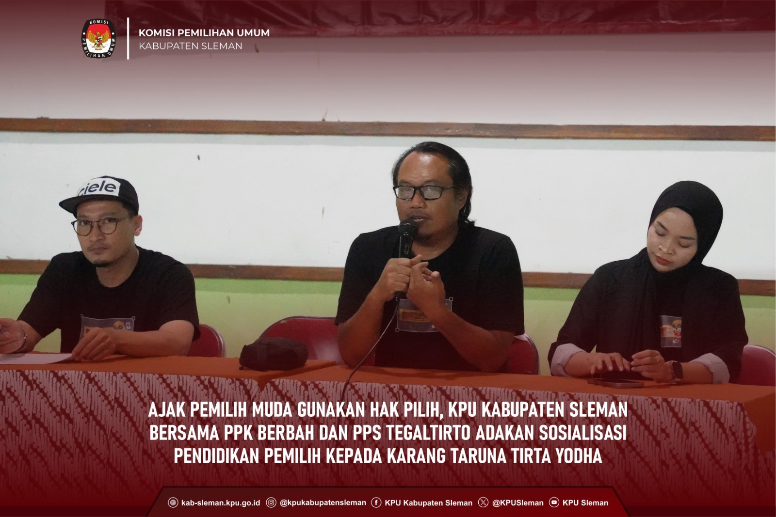 Sleman – Dalam rangka memperingati Hari Sumpah Pemuda yang ke-96, KPU Kabupaten Sleman bekerja sama dengan DEMA UIN Sunan Kalijaga menggelar kegiatan Sosialisasi dan Pendidikan Pemilih bertajuk “KPU Goes to Campus: Nonton Bareng Film Tepatilah Janji” karya sutradara Garin Nugroho bersama UIN Sunan Kalijaga pada Senin (28/10). Mahasiswa-mahasiswi dengan antusias antusias memenuhi Convention Hall Prof. R.H.A. Soenarjo, S.H. Sambutan pertama disampaikan oleh Thoriqotur Romadhani selaku Presma DEMA UIN Sunan Kalijaga. Thoriq menyampaikan ucapan terima kasih kepada Ketua KPU Kabupaten Sleman dan seluruh jajaran yang telah memilih UIN Sunan Kalijaga untuk menjadi tempat gelaran “KPU Goes to Campus: Nonton Bareng Film Tepatilah Janji”. Selanjutnya sambutan dari Ketua KPU Kabupaten Sleman, Ahmad Baehaqi turut menyampaikan terima kasih kepada Rektor UIN Sunan Kalijaga, Prof. Noorhaidi Hasan atas kesediaannya menjadi tempat penyelenggaraan “Nonton Bareng Film Tepatilah Janji”. Baehaqi menjelaskan bahwa makna Film “Tepatilah Janji” menyiratkan pesan penting yang berharga yaitu bagaimana seseorang yang telah menduduki jabatan harus dapat menepati janji dengan apa yg telah dijanjikannya. Di samping itu, film tersebut juga memberikan edukasi betapa pentingnya untuk memilih pemimpin secara cerdas, rasional, dan bertanggung jawab. dok.foto Sambutan Ketua KPU Sleman saat acara Nonton Bareng Tepatilah Janji Sementara itu, sambutan juga diberikan oleh Rektor UIN Sunan Kalijaga, Prof. Noorhaidi Hasan. Noorhaidi sangat mengapresiasi atas kegiatan yang diselenggarakan dan berharap kesempatan tersebut dapat memberikan banyak pengetahuan dan pelajaran yang dapat diambil pesan moral dari penayangan film tersebut. dok. foto Kadiv Rendatin saat ajak peserta Nobar memberikan tanggapan Memasuki materi sosialisasi, Arif Setiawan selaku Kepala Divisi Perencanaan, Data, dan Informasi KPU Kabupaten Sleman menyampaikan bahwa tujuan dari penayangan Film “Tepatilah Janji” adalah memberitahukan kepada masyarakat khususnya para mahasiswa yang merupakan pemilih pemula bahwa dalam mencari seorang pemimpin, tidak hanya dilihat dari sudut pandang fisik atau materi yang dimiliki. Akan tetapi juga perlu dilihat visi, misi, dan programnya, serta rekam jejak dan kepribadiannya. Hal tersebut sangat diperlukan agar nantinya dapat terpilih pemimpin yang berintegritas dan berkualitas. dok. foto peserta cermati bahan sosialisasi yang telah disebarkan Kegiatan dilanjutkan dengan penyerahan Maskot Gemati kepada Thoriqotur Romadhani selaku Presma DEMA UIN Sunan Kalijaga dan pertunjukan kesenian Tari Ronggeng Menor dari Grup Tari Ikamasi Yogyakarta. Seluruh peserta sekaligus mengerjakan pre-test terkait Pemilihan Bupati dan Wakil Bupati Sleman Tahun 2024 melalui tautan yang disediakan dalam QR Code. Kemudian, acara inti dilaksanakan dengan pemutaran Film “Tepatilah Janji”. Saat penayangan, film dengan durasi 1 jam 40 menit tersebut mampu membuat penonton menyaksikan dengan antusias dan menuai ekspresi yang campur-aduk di setiap adegannnya sehingga mampu membuat suasana menjadi ramai. dok.foto Pimpinan bersama perseta saat sesi foto bersama Setelah pemutaran film berakhir, seluruh mahasiswa kembali mengerjakan post test terkait Pemilihan Bupati dan Wakil Bupati Sleman Tahun 2024 serta secara interaktif bagi yang mampu menjawab pertanyaan terkait kepemiluan dan film yang telah diputar diberikan doorprize dari KPU Kabupaten Sleman. Setelah itu acara ditutup dengan beberapa mahasiswa diminta memberikan kesan-pesan terkait film yang diputar dan harapan tentang Pilkada Serentak Tahun 2024. (cls)