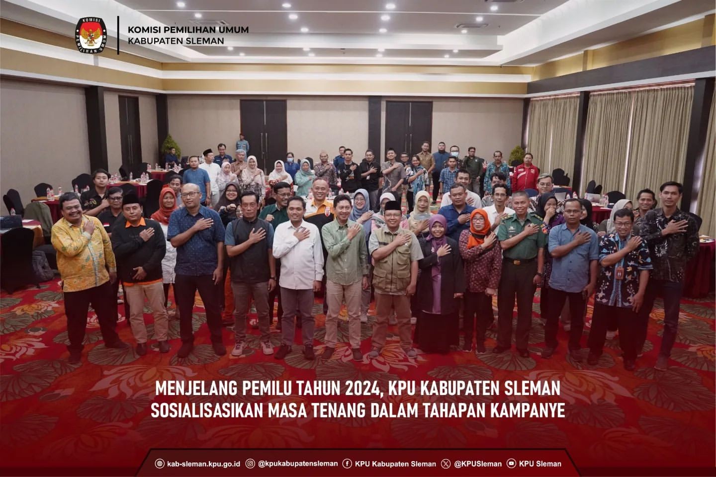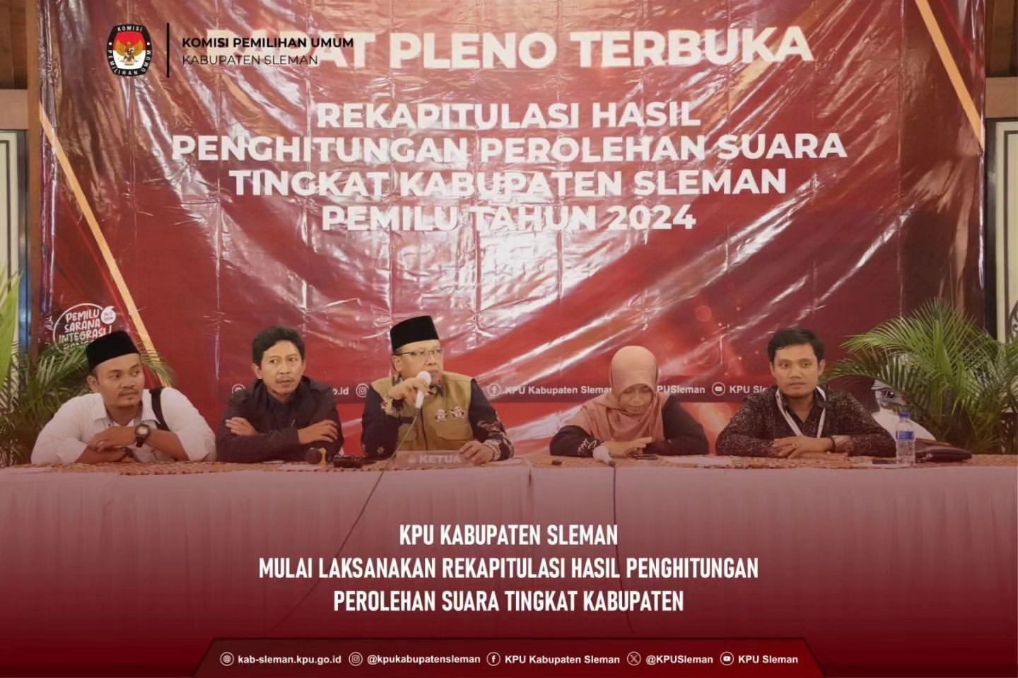 Sleman (09/02) - KPU Kabupaten Sleman melaksanakan Bimbingan Teknis Rekapitulasi Hasil Pemungutan Suara dan SIREKAP pada Pemilu Tahun 2024 pada Jumat (09/02) pukul 09.00 WIB. Kegiatan yang dilaksanakan pada The Rich Jogja Hotel tersebut mengundang stakeholder terkait, Ketua dan Anggota PPK se-Kabupaten Sleman, PPS Divisi Teknis dan Data Informasi se-Kabupaten Sleman, Sekretaris PPS se-Kabupaten Sleman, dan Tenaga Pendukung PPK se-Kabupaten Sleman.