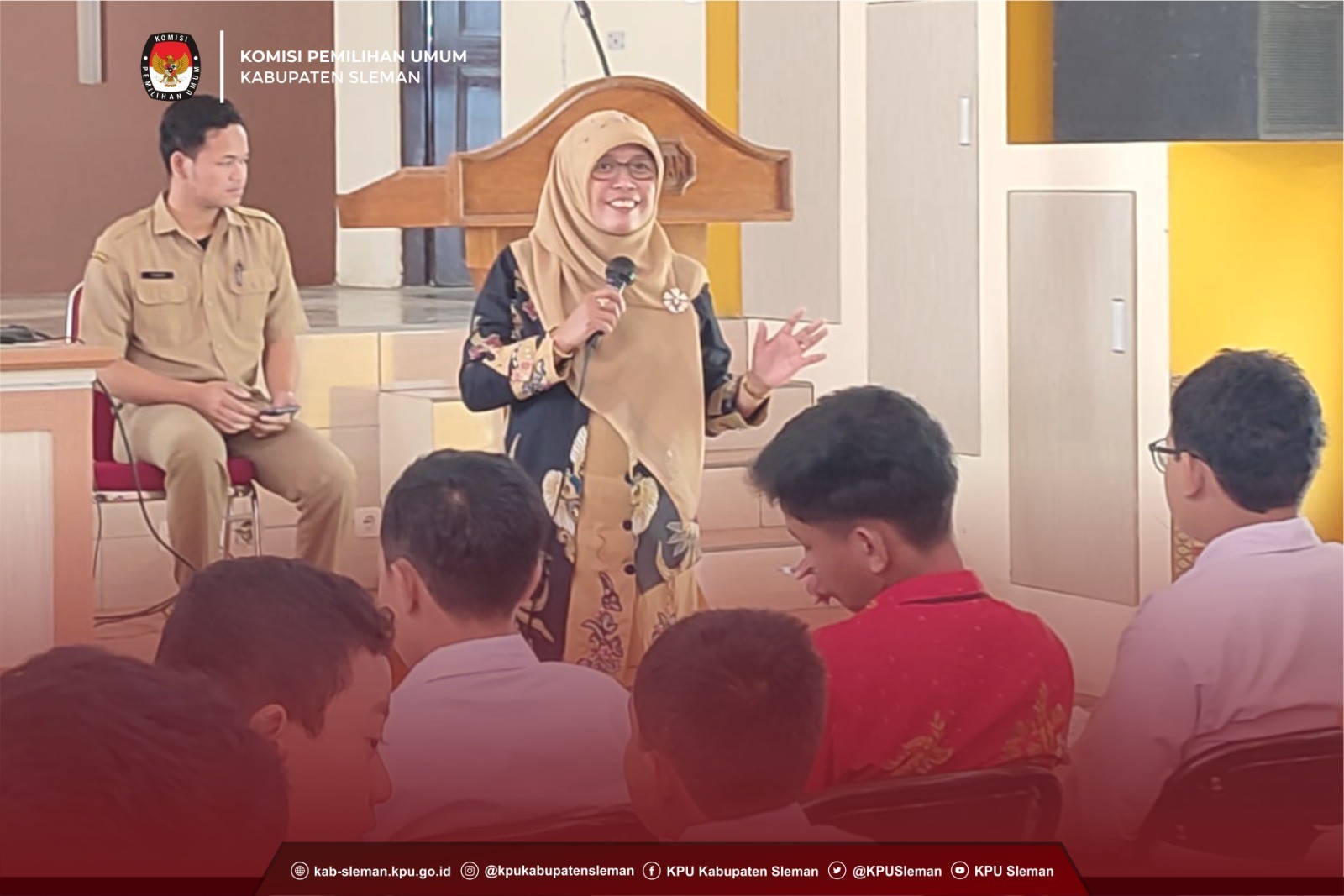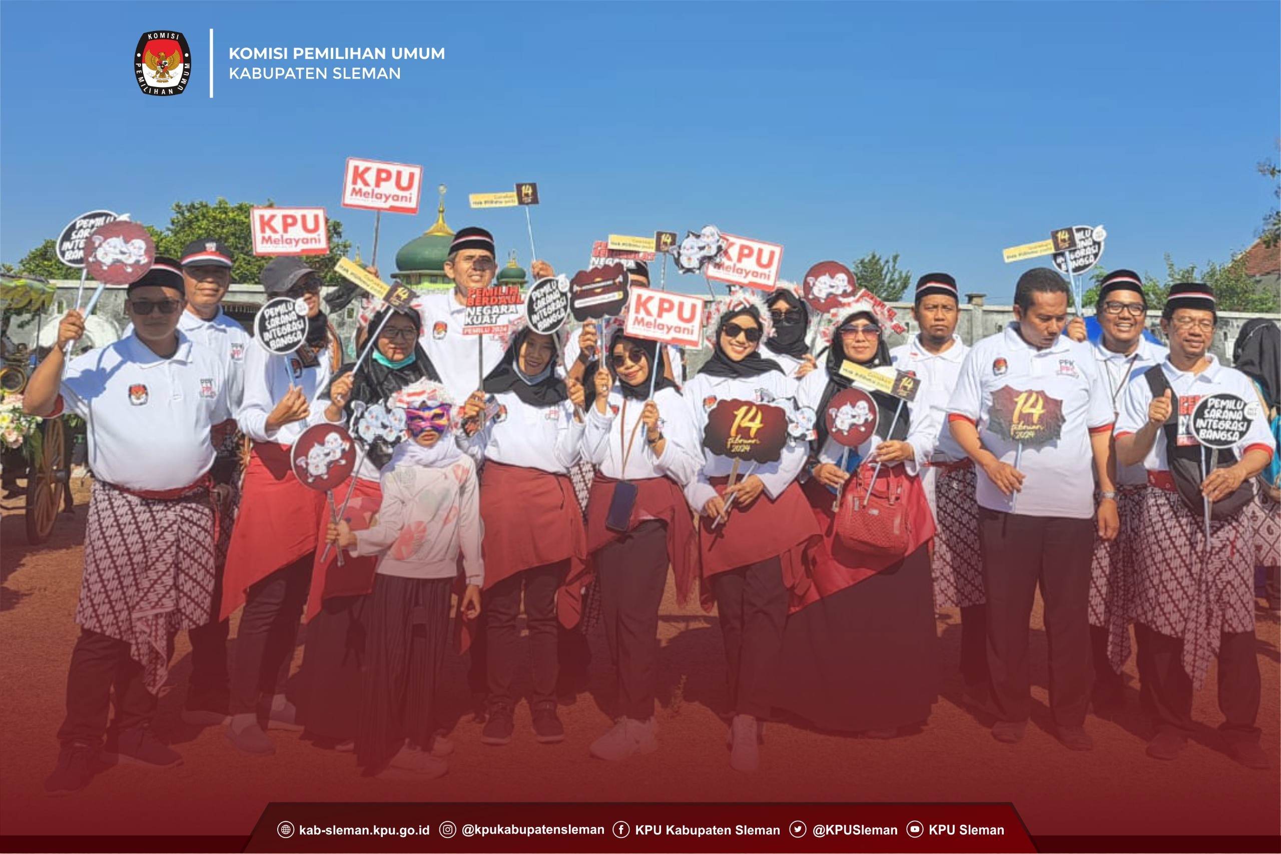 Sleman (07/09) – Jelang Pemilu 2024, sosialisasi tiada henti digaungkan KPU Kabupaten Sleman dalam berbagai kesempatan. Kesenian dan Budaya juga menjadi salah satu media untuk melakukan sosialisasi. Gelaran Kirab Saparan Bekakak 2023 yang diselenggarakan oleh Pemerintah Kalurahan Ambarketawang menjadi event yang efektif dalam melaksanakan Sosialisasi Pemilu 2024. Hal ini dikarenakan banyaknya pengunjung dari berbagai segmen pemilih. Gelaran yang rutin diadakan tahunan setiap tanggal 15 Bulan Safar dalam penanggalan Jawa ini menampilkan kreasi seni dan budaya masyarakat Kalurahan Ambarketawang. dok. foto Sura sang maskot Pemilu 2024 saat berinterkasi dengan pengunjung Bekakak Acara yang digelar di Kalurahan ini dihadiri oleh Bupati Sleman, Dinas Pariwisata dan Kebudayaan Daerah Istimewa Yogyakarta, para pemangku adat dan dimeriahkan oleh pagelaran budaya oleh warga Kalurahan Ambarketawang hingga masyarakat pada umumnya. dok. foto Kadiv Sosdiklih beserta PPK PPS saat lakukan sosialisasi Dalam gelaran Saparan Bekakak yang terlaksana pada Jumat (01/09) ini, KPU Kabupaten Sleman bersinergi dengan Penyelenggara Pemilu di tingkat Kapanewon dan Kalurahan se-Kapanewon Gamping mensosialisasikan dua hal penting kepada masyarakat diantaranya hari pemungutan suara serta pengecekan daftar pemilih melalui cekdptonline.kpu.go.id. “ selain menghadiri kirab seni dan budaya Saparan Bekakak, kita mensosialisasikan Pemilu 2024 agar masyarakat terinformasi “, tutur Aswino Wardhana selaku Ketua Divisi Sosialisasi dan Pendidikan Pemilih saat ditemui di lapangan Ambarketawang dok. foto staf KPU Sleman bagikan leaflet tahapan sosialisasi Ketua Divisi Sosialisasi, Pendidikan Pemilih, Parmas dan SDM serta PPK dan PPS se Kapanewon Gamping mengikuti kirab dengan berjalan mengelilingi Kalurahan Ambarketawang dengan membagikan leaflet, stiker dan flyer yang berisi tanggal pemungutan suara dan tahapan Pemilu 2024. Diiringi dengan diperdengarkannya jingle Pemilu 2024, masyarakat antusias mengikuti kegiatan tersebut, terbukti dengan animo masyarakat bertanya tentang tanggal pemungutan suara dan interaksi dengan maskot Pemilu 2024 Sura dan Sulu. (mbl)