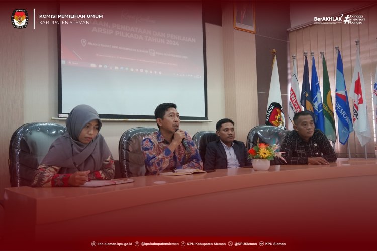 Sleman - KPU Kabupaten Sleman kembali laksanakan pengisian Lembar Kerja Evaluasi Zona Integritas (LKE ZI) sebagai bagian dari evaluasi atas program Zona Integritas di Lingkungan KPU Kabupaten Sleman. Kegiatan tersebut dilaksanakan Rabu (10/09) di Ruang Rapat Kantor KPU Kabupaten Sleman. Materi pokok yang dibahas adalah mengenai agen perubahan dan budaya kerja. Peserta rapat yang dihadiri oleh Anggota, Sekretaris, Kepala Subbagian dan masing-masing perwakilan subbagian di lingkungan KPU Kabupaten Sleman melakukan pencermatan poin tersebut secara kolektif. Kurnia Pramuditya selaku Kepala Subbagian Teknis Penyelenggaraan Pemilu dan Hukum KPU Kabupaten Sleman menyatakan kelengkapan bukti dukung pada aspek agen perubahan perlu menjadi perhatian khusus serta menciptakan tagline budaya kerja pada satuan kerja KPU Kabupaten Sleman. Yuyud Futrama selaku Sekretaris KPU Kabupaten Sleman menyorot pada inventarisir bukti dukung pada agen perubahan, sedangkan Huda Al Amna sebagai Ketua Divisi Sosialisasi, Pendidikan Pemilih, Partisipasi Masyarakat, dan SDM KPU Kabupaten Sleman memaparkan usulan terkait tagline budaya kerja KPU Kabupaten Sleman. Koordinasi diakhiri dengan menghimpun seluruh usulan peserta rapat baik terkait agen perubahan ataupun tagline budaya kerja agar ditindaklanjuti segera sehingga dapat dilampirkan pada Lembar Kerja Evaluasi Zona Integritas dan direalisasikan oleh internal KPU Kabupaten Sleman. (wind)