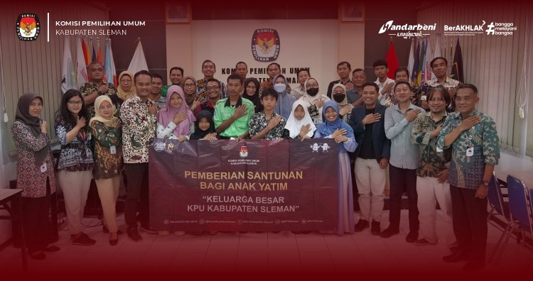 Sleman – Untuk menumbuhkan rasa kepedulian dan mempererat tali silaturahmi serta meningkatkan solidaritas di masyarakat, KPU Kabupaten Sleman menggelar kegiatan KPU Peduli Anak Yatim, Santunan, dan Doa Bersama yang berlangsung pada hari Jumat (06/02) bertempat di ruang rapat kantor KPU Kabupaten Sleman. Kegiatan dilaksanakan serentak oleh lembaga KPU di seluruh Indonesia. Acara diawali dengan sambutan dari Ketua Divisi Sosialisasi Pendidikan Pemilih Partisipasi Masyarakat dan SDM KPU Kabupaten Sleman, Huda Al Amna yang menyampaikan ucapan terima kasih atas kehadiran anak-anak yatim dan pendamping. Huda menyebutkan kegiatan santunan ini merupakan wujud syukur, kepedulian, dan silaturahmi terhadap masyarakat sekitar KPU Kabupaten Sleman. Huda berpesan agar anak-anak yatim tetap semangat dan tekun menuntut ilmu dan saling mendoakan agar selamat dan mulia dunia akhirat. Selanjutnya Sekretaris KPU Kabupaten Sleman, Yuyud Futrama menjelaskan maksud dan tujuan kegiatan santunan ini merupakan agenda rutin yang bertujuan untuk menanamkan rasa empati dan memperhatikan anak yatim. Yuyud menyampaikan agar anak-anak yatim dapat berdoa dan mendoakan untuk selalu diberi kesehatan dan dikelilingi oleh orang-orang baik serta untuk para pengasuh diberi kesehatan dan ketabahan. Ketua Divisi Teknis Penyelenggaraan KPU Kabupaten Sleman, Noor Aan Muhlishoh turut menyampaikan pesan bahwa di dunia ini kita tidak sendiri, sehingga jika menemui kesusahan hendaklah segera meminta bantuan orang lain. Noor Aan juga memohon doa kepada anak-anak yatim yang hadir agar KPU Kabupaten Sleman dapat menjadi lembaga yang tetap tegak berdiri, mandiri, dan profesional sehingga dapat menyelenggarakan pemilu dan pemilihan hingga akhir. Kegiatan dilanjutkan dengan doa bersama yang dipimpin oleh Ketua Divisi Hukum dan Pengawasan KPU Kabupaten Sleman, Sura’ie yang kemudian ditutup dengan penyerahan bantuan berupa uang tunai kepada anak-anak yatim. Bantuan tersebut diharapkan dapat meringankan beban serta memberikan kebahagiaan bagi anak-anak yatim, khususnya dalam memenuhi kebutuhan sehari-hari. Penerima santunan tampak antusias dan bahagia dalam mengikuti seluruh rangkaian acara. (mbl)