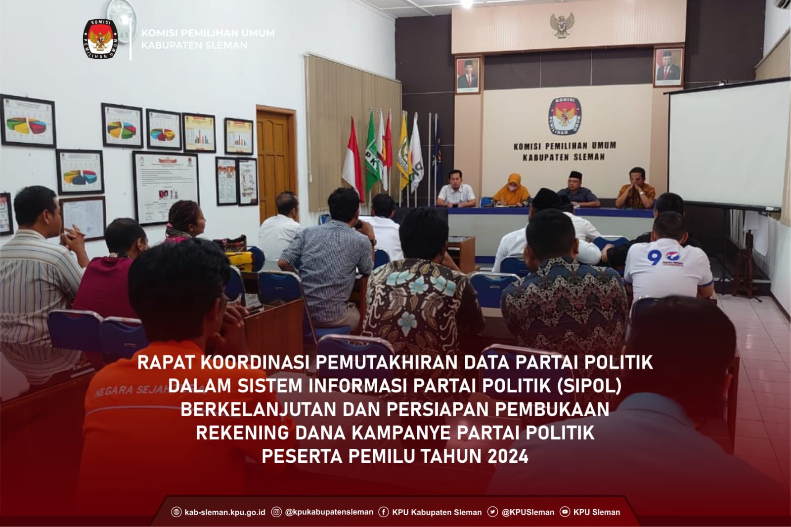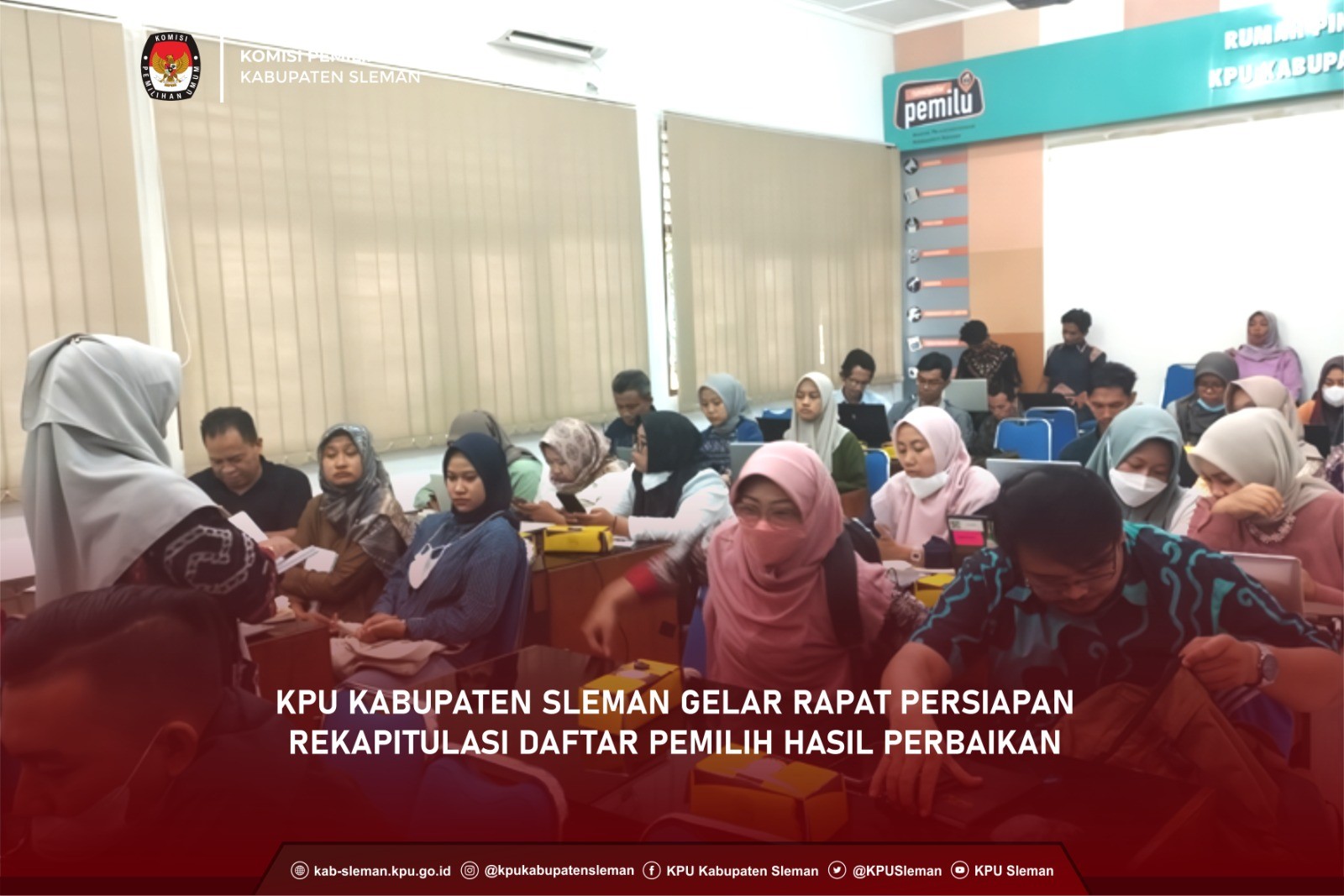 Sleman (06/04) – KPU Kabupaten Sleman menyelenggarakan rapat persiapan rekapitulasi Daftar Pemilih Hasil Perbaikan (DPHP). Acara yang diselenggarakan 29 Maret 2023 ini dihadiri oleh Ketua dan Anggota PPK Divisi Data dan Informasi se Kabupaten Sleman. Ketua KPU Kabupaten Sleman, Trapsi Haryadi dalam pembukaan acara menyampaikan harapan adanya persaman persepsi menjelang rapat pleno rekapitulasi DPHP oleh PPS pada tanggal 31 Maret 2023 mendatang dan rekapitulasi DPHP tingkat kecamatan oleh PPK pada tanggal 2 April 2023. Pelaksanaan rapat persiapan rekapitulasi DPHP dipimpin Indah Sri Wulandari, Ketua Divisi Perencanaan Data dan Informasi KPU Kabupaten Sleman. Beliau menyampaikan untuk undangan dan daftar hadir pleno DPHP PPK dan PPS telah disusun draft format undangan tingkat desa dan kecamatan untuk meminimalisir kesalahan administrasi. Dengan draft tersebut diharapkan dapat dipedomani saat menyusun undangan sehingga seragam. dok.foto Kadiv Perdatin Indah Sri W saat sampaikan persiapan pelaksanaan pleno DPHP Indah memaparkan pula mengenai tata cara dan tata tertib rapat pleno terbuka rekapitulasi DPHP di tingkat PPS dan PPK sehingga dalam pelaksanaan rekapitulasi dapat berjalan dengan baik sesuai ketentuan yang telah ditetapkan dan untuk menjaga ketertiban ketika rapat berlangsung. Data yang akan digunakan sebagai bahan rekapitulasi DPHP merupakan data hasil coklit yang diturunkan KPU Kabupaten Sleman melalui Sistem Informasi Data Pemilih (SIDALIH) yang diolah dan dimasukan form sesuai kebutuhan rekapitulasi. Jika ada masukan harus disertai dengan bukti otentik sehingga dapat langsung dimasukkan ke dalam formulir Model A Daftar Perubahan Pemilih. Diupayakan masukan dari Bawaslu Kabupaten Sleman terkait data dilakukan sebelum atau sesudah pleno. Tujuan dilaksanakannya rapat ini untuk menyamakan persepsi menjelang rapat pleno terbuka rekapitulasi DPHP tingkat PPS dan PPK, sehingga rapat pleno bisa berjalan tertib dan lancar. Adapun draft dan formulir terkait kebutuhan administrasi telah disediakan oleh KPU. Untuk data sebagai bahan rapat pleno diturunkan dari Sidalih. Semua persiapan yang telah dilaksanakan diharap berimplikasi pada kegiatan rekapitulasi DPHP di tingkat PPK dan PPS berjalan lancar dan sukses menuju rekapitulasi DPHP dan penetapan DPS tingkat Kabupaten. (Mbl)
