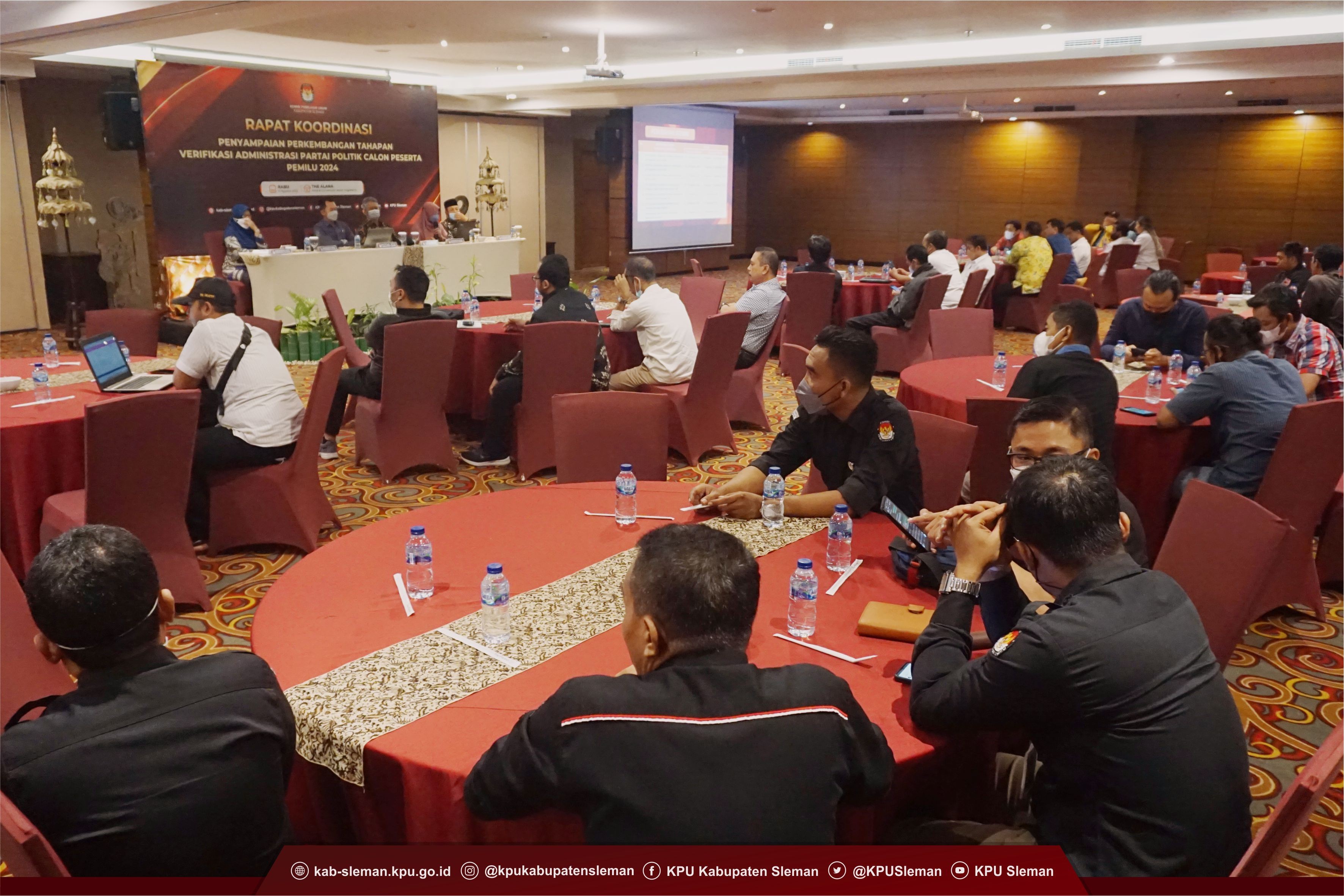 Dalam masa verifikasi adminstrasi, KPU Kabupaten Sleman juga melaksanakan rapat koordinasi dengan partai politik calon peserta pemilu yang terdaftar dalam Sipol di wilayah Kabupaten Sleman sebanyak 2 kali. Rapat koordinasi tersebut dilakukan untuk menyampaikan informasi tahapan verifikasi administrasi agar partai politik mendapat gambaran mengenai proses verifikasi administrasi yang sedang dilaksanakan dan dapat segera menindaklanjuti terkait hasil verifikasi tersebut. dok. foto Koordinasi bersama partai politik calon peserta Pemilu 2024 Rapat koordinasi pertama pada tanggal 22 Agustus 2022 dilaksanakan untuk penyampaian terkait data ganda eksternal di antara 2 partai atau lebih yang dinyatakan sementara sebagai BMS sudah dapat dilihat oleh partai politik di akun Sipol partai politik masing-masing. Partai politik menindaklanjuti dengan menerbitkan surat pernyataan yang diunggah di Sipol untuk membuktikan bahwa anggotanya yang didapati ganda dengan partai lain benar-benar sebagai anggota partainya. dok. foto Perwakilan Partai Golkar saat tanggapi terkait ganda eksternal Rapat koordinasi kedua pada tanggal 31 Agustus 2022 dilaksanakan untuk menyampaikan perkembangan tahapan verifikasi administrasi partai politik calon peserta Pemilu 2024. Perkembangan tersebut mengenai perubahan Keputusan KPU RI nomor 259 Tahun 2022 sebagaimana telah diubah dengan Keputusan KPU RI nomor 308 tentang Pedoman Teknis Bagi Partai Politik dalam Pelaksanaan Pendaftaran, Verifikasi, dan Penetapan Partai Politik Peserta Pemilihan Umum Anggota DPR dan DPRD dan Keputusan KPU RI nomor 260 Tahun 2022 sebagaimana telah diubah dengan Keputusan KPU RI nomor 309 tentang Pedoman Teknis Bagi KPU Provinsi dan KPU Kab/kota dalam Pelaksanaan Pendaftaran, Verifikasi, dan Penetapan Partai Politik Peserta Pemilihan Umum Anggota DPR dan DPRD. dok. foto Koordinasi kedua terkait tahapan verifikasi administrasi Beberapa hal perubahan dalam aturan yang disampaikan adalah masa perpanjangan tahapan verifikasi administrasi dan perihal surat pernyataan ganda eksternal, pekerjaan, dan usia/perkawinan yang diunggah untuk tiap anggota yang awalnya harus bermaterai menjadi tidak bermaterai, namun harus dilengkapi dengan surat pernyataan pimpinan partai politik yang bermaterai. Untuk surat pernyataan pekerjaan ditambahkan bukti keputusan pejabat berwenang tentang pemberhentian dan surat pernyataan usia/perkawinan ditambahkan akta nikah. dok.foto Sejumlah LO partai politik hadir dalam koordinasi di Hotel Alana KPU Kabupaten Sleman menindaklanjuti surat pernyataan yang telah diunggah oleh partai politik ke Sipol. Dalam hal terdapat anggota yang belum dapat dipastikan keanggotaannya, KPU Kabupaten Sleman melakukan klarifikasi secara langsung. Kegiatan tersebut dilaksanakan pada tanggal 5 September 2022 di Kantor KPU Kabupaten Sleman dengan menghadirkan anggota melalui petugas penghubung/LO partai politik. Di penghujung masa verifikasi administrasi pada tanggal 6 sampai dengan 9 September, KPU Kabupaten Sleman memenindaklanjuti hasil klarifikasi indikasi NIK oleh Kemendagri dengan menyisir setiap nama dari masing-masing keanggotaan partai politik. Apabila hasil dari Kemendagri berupa NIK ada dalam data kependudukan, meninggal dari data Dukcapil, atau meninggal dari data BPS/BPJS anggota dinyatakan sesuai. Untuk hasil NIK tidak ada dinyatakan tidak sesuai. KPU Kabupaten Sleman kemudian menerbitkan berita acara hasil verifikasi administrasi partai politik calon peserta Pemilu 2024 yang memuat rekapitulasi jumlah keanggotaan MS, TMS, dan BMS tiap partai politik yang terdaftar pada Sipol di wilayah Kabupaten Sleman. (Cls)