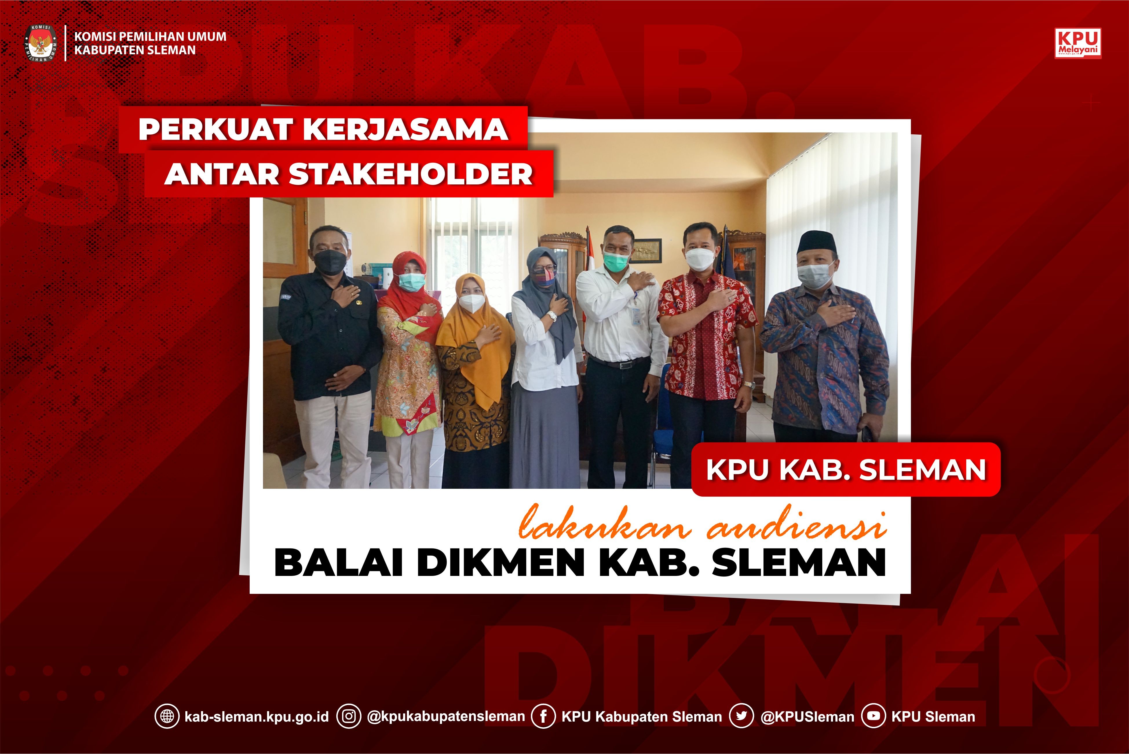 Sleman (09/02) – Sinergi dan kerjasama dengan stakeholder menjadi salah satu faktor pendukung keberhasilan pelaksanaan kegiatan baik pada saat tahapan maupun non tahapan pemilu/pemilihan. Menjelang Pemilu 2024 serta sebagai upaya memperkuat kerjasama, KPU Kabupaten Sleman kembali melakukan audiensi ke Balai Pendidikan Menengah (Dikmen) Kabupaten Sleman pada Rabu (09/02). dok. foto Komisioner dierima Kepala Balai Dikmen Kabupaten Sleman Tepat pukul 09.30 WIB anggota KPU Kabupaten Sleman telah hadir di kantor Balai Dikmen Kabupaten Sleman. Turut serta mendampingi komisioner yakni pejabat struktural pada Sub Bagian Teknis Pemilu dan Hupmas. Ditemui secara langsung oleh Kepala Balai Dikmen Kabupaten Sleman Tukiman yang didampingi oleh Kepala Sub Bagian KUL. Beliau menyambut baik kunjungan Komisioner serta Sekretariat KPU Kabupaten Sleman. dok. foto Kepala Balai Dikmen beserta Kepala Sub Bagian KUL menerima audiensi Mengawali diskusi Ketua KPU Kabupaten Sleman Trapsi Haryadi menyampaikan beberapa hal diantaranya agenda kegiatan KPU Kabupaten Sleman yang berhubungan dengan pemilih pemula diantaranya pemutakhiran data pemilih berkelanjutan serta pendidikan pemilih. “Salah satu ketugasan KPU Kabupaten Sleman adalah menjamin hak pilih setiap orang. Dalam upaya penjaminan hak pilih tersebut saat ini kami melaksanakan kegiatan pemutakhiran data pemilih berkelanjutan. Pemilih pemula menjadi salah satu sasaran kami dalam pendataan pemilih sehingga kami berharap adanya kerjasama dari Balai Dikmen terhadap kebutuhan informasi terkait anak didik yang telah genap 17 tahun dan akan menjadi pemilih pada Pemilu 2024 mendatang“, seperti disampaikan Trapsi saat memulai diskusi Komisioner KPU Kabupaten Sleman yang lain juga turut serta menyampaikan pandangan terkait dua pokok bahasan tersebut. “ KPU Kabupaten Sleman akan selalu bersurat secara resmi apabila terspaat kebutuhan data siswa. Selain hal tersebut kami melaksanakan rapat koordinasi Rekapitulasi Data Pemilih Berkelanjutan setiap tiga bulan sekali sengan mengundang stakeholder, kami berharap Dikmen dapat berpartisipasi ”. seperti ditambahkan Ketua Divisi Perdatin Indah Sri Wulandari Dalam audiensi tersebut Kepala Balai Dikmen Kabupaten Sleman Tukiman menyampaikan bahwa kami (Dikmen) tentunya dengan tangan terbuka dalam hal kerjasama baik terkait pendataan pemilih maupun pendidikan pemilih bagi pemilih pemula. “ Pendidikan pemilih ini berkorelasi dengan program wawasan kebangsaan dan nasionalisme di sekolah. Tentunya akan dapat saling melengkapi “, seperti dijelaskan oleh beliau dok.foto peserta audiensi mendengarkan Lagu Kebangsaan Indonesia Raya Diskusi diakhiri tepat pada pukul 10.00 WIB bertepatan dengan waktu pemutaran lagu kebangsaan Indonesia Raya. Seluruh orang yang ada dalam ruangan maupun luar ruangan dengan sikap tegak sempurna dan khidmad mendengarkan lagu Indonesia Raya. (Nars)
