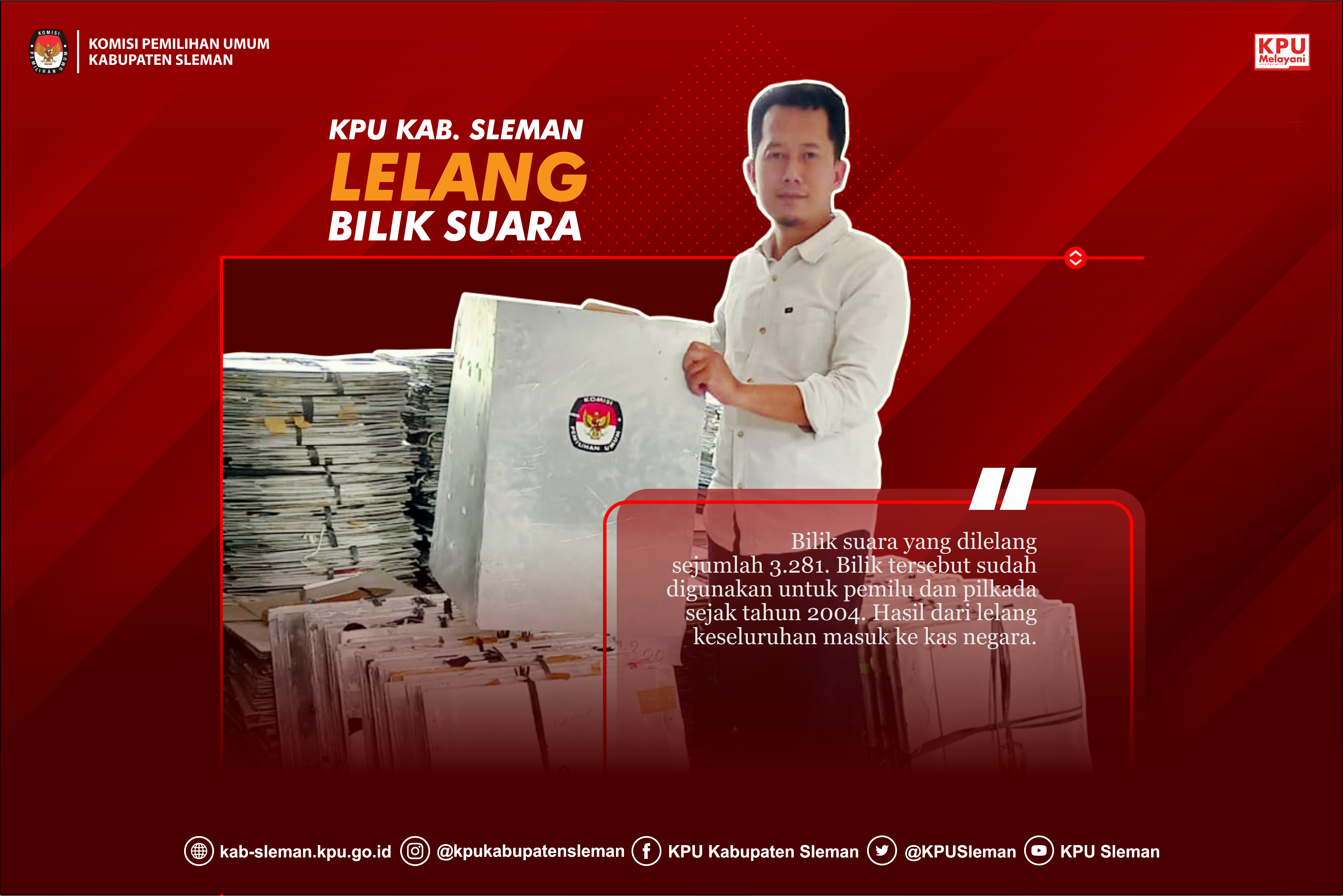 Sleman (19/01) - Setelah sebelumnya menghibahkan 5.000 bilik suara alumunium eks pemilu kepada Pemerintah Kabupaten Sleman pada Senin (03/01) lalu, Komisi Pemilihan Umum Kabupaten Sleman juga telah selesai melaksanakan lelang bilik suara alumunium eks Pemilu yang tersisa sebanyak 3.281 bilik pada Selasa 18 Januari 2022. Bilik suara ini adalah bilik suara yang diterima dari KPU RI sejak Pemilu Tahun 2004. dok. foto perwakilan KPU Kabupaten Sleman mengikuti proses lelang bilik suara Proses lelang hingga pengumuman pemenang lelang telah dilaksanakan di Kantor Pelayanan Kekayaan Negara dan Lelang (KPKNL) yang dihadiri dan disaksikan perwakilan dari Sekretariat Komisi Pemilihan Umum Kabupaten Sleman pada Kamis (13/01). Pemenang lelang juga telah mengambil bilik suara di Gudang Komisi Pemilihan Umum Kabupaten Sleman pada Selasa (18/01). dok. foto Proses penandatanganan hasil lelang Ketua KPU kabupaten Sleman yang sekaligus mengampu divisi logistik, Trapsi Haryadi turut serta menyaksikan proses pengambilan logistik bilik suara oleh pemenag lelang. “ Lelang ini merupakan instruksi KPU RI dalam rangka penghapusan bilik suara baik melalui hibah ataupun lelang. Hasil lelang ini akan masuk ke kas negara”, Ujar Trapsi ditemui saat proses pengambilan bilik suara. dok. foto Proses pengambilan logistik eks pemilu Pemenang lelang mengambil dan menerima barang berupa 1 paket bilik suara berbahan alumunium sebanyak 3166 bilik suara dengan kondisi baik dan 115 dengan kondisi rusak. Pemenang lelang juga sudah menyatakan kesanggupan untuk menghancurkan hasil lelang tersebut dengan cara dilebur dan didaur ulang sehingga fisik dan informasi tidak dapat dikenali lagi. Hal tersebut sebagai antisipasi dari penyalahgunaan barang. Dengan telah dilaksanakan hibah dan lelang bilik suara eks pemilu, KPU Kabupaten telah tuntas dalam penghapusan semua bilik suara alumunium sebagai bagian pelaksanaan Instruksi Sekretaris Jenderal Komisi Pemilihan Umum Nomor 12 Tahun 2021 Tentang Tindak Lanjut Pengelolaan Logistik Pasca Pemilu dan Pemilihan untuk Kebutuhan Tempat Penyimpanan Logistik Pemilu dan Pemilihan Tahun 2024. (Cholis/Nars)