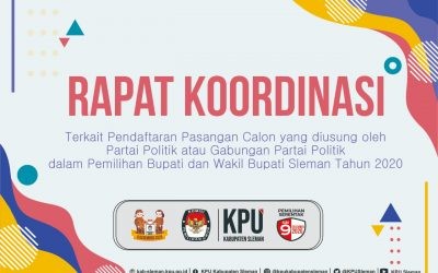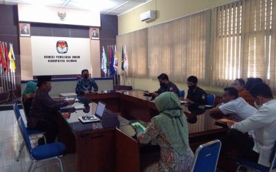 Sleman (28/08) – Bimbingan Teknis Aplikasi SIDALIH bagi PPK pada Pemilihan Bupati dan Wakil Bupati Tahun 2020 digelar dalam dua gelombang sejak Selasa 25 Agustus 2020 hingga 26 Agustus 2020. Bimtek dilaksanakan secara tatap muka bertempat di kantor KPU Kabupaten Sleman dengan tetap memperhatikan protokol pencegahan penyebaran virus Covid-19. Gelombang pertama Bimtek dihadiri oleh Ketua dan anggota divisi data PPK kecamatan Mlati, Turi, Tempel, Seyegan, Gamping, Minggir, Moyudan, dan Godean. Sementara hari keua hadir Ketua dan anggota divisi data PPK Kecamatan Prambanan, Kalasan, Berbah, Ngemplak, Cangkringan, Depok, Ngaglik, Pakem dan Sleman. Ketua KPU Kabupaten Sleman Trapsi Haryadi dalam membuka Bimtek menyampaikan bahwa tujuan dilaksanaannya kegiatan ini untuk guna keperluan penggunaan aplikasi SIDALIH guna penyusunan data pemilih dan bagaimana membuat kontrol data A0 atau data hasil coklit.