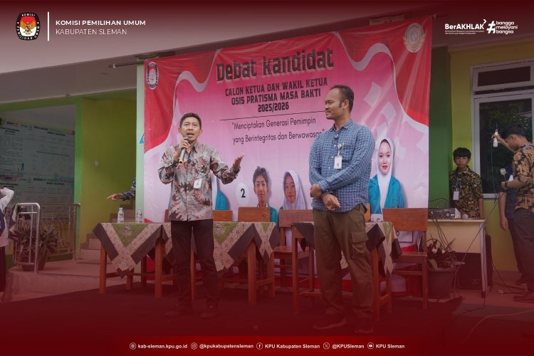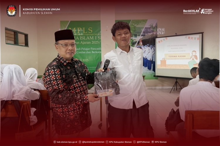 Sleman – KPU Kabupaten Sleman melakukan sosialisasi dan pendidikan pemilih dengan menghadiri kegiatan Kokurikuler Demokrasi di SMP Negeri 4 Tempel pada Jumat (28/08). Kegiatan yang diselenggarakan di Mushola SMP Negeri 4 Tempel diikuti oleh 120 siswa-siswi dari kelas 7A sampai dengan 7D. Bertindak sebagai narasumber Ketua Divisi Sosdiklih, Parmas, dan SDM KPU Kabupaten Sleman, Huda Al Amna secara interaktif dan penuh semangat menyampaikan bahwa dalam program sosialisasi dan pendidikan pemilih, para siswa dapat belajar banyak hal terkait kepemiluan seperti; pengertian pemilu, syarat menjadi pemilih, lembaga penyelenggara pemilu, nilai-nilai yang terkandung dalam pemilu, dan banyak hal lain yang berhubungan dengan pendidikan pemilih. Lebih lanjut, Huda menekankan kepada siswa-siswi bahwa salah satu pentingnya pemilu adalah untuk meningkatkan kesejahteraan dan kualitas hidup masyarakat. Melalui pemilu, masyarakat diberikan kesempatan menentukan pemimpinnya. Hal tersebut dapat terwujud apabila masyarakat memilih pemimpin yang setiap kebijakannya bertujuan untuk meningkatkan kesejahteraan masyarakat. Kegiatan ditutup dengan pembagian bingkisan menarik kepada para siswa yang aktif dalam sesi tanya jawab kepemiluan. Di akhir kegiatan, Huda berpesan kepada para siswa apabila nanti sudah memenuhi syarat menjadi pemilih agar dapat menggunakan hak pilihnya dengan bijak dengan menjadi pemilih yang cerdas, rasional, dan bertanggungjawab. (agl)