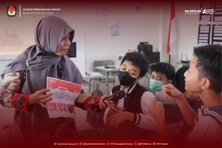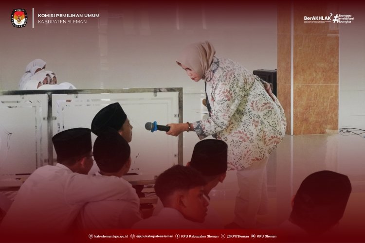 Sleman – Sebagai upaya mempersiapkan pemilih pemula yang mandiri, rasional, dan bertanggungjawab, KPU Kabupaten Sleman melanjutkan sosialisasi dan pendidikan pemilih pada Masa Pengenalan Lingkungan Sekolah (MPLS) yang bertempat di SMA Kolombo Sleman pada Rabu (16/07). Kegiatan tersebut diikuti oleh 146 siswa-siswi gabungan dari 6 kelas. Sura’ie, selaku Ketua Divisi Hukum dan Pengawasan KPU Kabupaten Sleman menyampaikan materi pendidikan pemilih yang mencakup demokrasi dan kepemiluan. Sura’ie berharap momentum demokrasi lima tahunan menjadi regenerasi kepemimpinan yang ditentukan oleh pemilih dengan pandangan dan preferensi yang rasional, sehingga nantinya pemilih datang ke TPS menggunakan hak pilihnya dengan harapan memilih pemimpin yang mempunyai visi misi, kapasitas, dan integritas untuk memperbaiki bangsa dan negara. Dalam kesempatan tersebut, juga diperkenalkan tata cara menjadi pemilih baru bagi masyarakat yang sudah memenuhi syarat sebagai pemilih namun belum terdaftar sebagai pemilih. Diawali dengan cek data pemilih melalui laman cekdptonline.kpu.go.id dan pengisian formulir masukan dan tanggapan masyarakat terkait daftar pemilih berkelanjutan. Kegiatan tersebut diharapkan dapat menumbuhkan kesadaran dalam memilih pemimpin yang berkualitas khususnya bagi pemilih pemula dan berharap dapat disimulasikan dan dipraktekkan pada saat Pemilihan Ketua OSIS dengan memilih berdasarkan kemampuan dan dapat membawa aspirasi siswa di sekolah. Acara ditutup dengan pemberian cenderamata kepada siswa dan pihak sekolah disertai foto bersama. (cls)