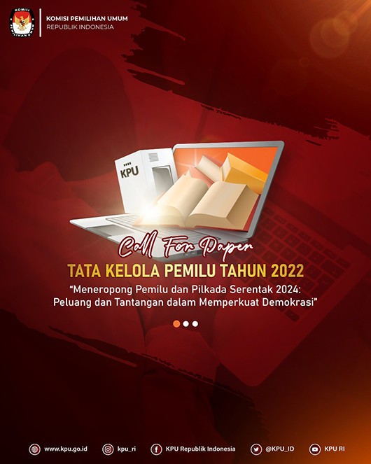 Dalam rangka Konferensi Tata Kelola Pemilu Tahun 2022, KPU RI mengundang akademisi, peneliti, dan praktisi bidang kepemiluan serta masyarakat untuk menyumbangkan naskah akademis Tata Kelola Pemilu Tahun 2022 bertema "Meneropong Pemilu dan Pilkada Serentak 2024.